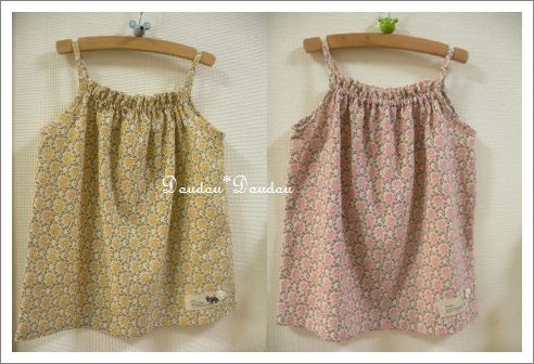 HARUさんのガーデンリングで、hibi+さんのギャザーキャミソールを作りました。丈は5cmほど伸ばして、チュニック丈に。。。 最初は2着ともイエローで製作していたのですが、私の勘違いで大失敗!しかも、完成間際にそのミスに気付く始末。。。一から作り直すのに、娘たちに色の確認をしてみると妹ちゃんが 「ピンクがいい!」 と言うのでイエローとピンクで作り直しました。 前後が分かり難いので、C&Sさんのタグを縫いつけ、ポイントに小花モチーフも** 人気のあるパターンだけあって、すごく可愛いですね~♪普段90~95サイズを着用している娘たちですが、100サイズでも大丈夫そうです^^今は重ね着するのに相性のいいお洋服があまりないので春~夏にいっぱい活躍してもらいます☆ミ ランキングに参加しています。 「ぽちっ」 としていただけると、とっても励みになります**↓ ↓ ↓ 2月19日12時00分~共同購入で可愛い小花プリントが買えます♪う~ん、可愛い!私も参戦してみようかなぁ*^^* 日本製 コットン 平織り シワ加工 小花プリント 5色 100cm1000円 ⇒ 500円