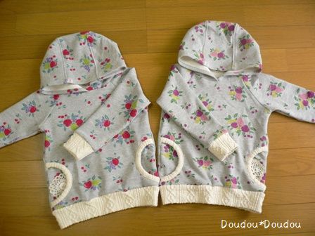 Rick Rackさんのフルーツ柄ダンボールニットで、ラグランパーカーを作りました。90サイズの型紙から、95位のサイズになるように調整してなかなかいい感じの大きさで作れました** 付属に利用したのは、Wildberryさんの縄編みシャーリングジャガード。ずっと憧れていた生地で、予約販売でようやくGETできたもの(o^^o) 脇ポケットにも初挑戦です。ポケットの中から、形違いのドイリーがちらり♪左右対称につけています。 我が家の娘たち、最近帽子がマイブームらしくフードを見て、「ぼうし~♪」 と言いながら喜んでました** 可愛い可愛い・・・我が家のフルーツ柄ずきんちゃんたち。(笑) ランキングに参加しています。 「ぽちっ」 と1クリックしていただけると、とっても励みになります**↓↓↓