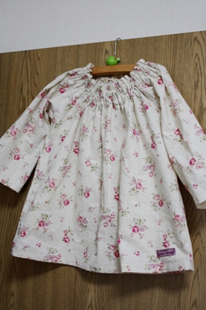 hibi+さんのパターンで、ギャザースモックを作りました。100サイズのパターンを、自己流で110サイズに補正。お姉ちゃんがパープル、妹ちゃんがピンクです。 やっぱりこの形、可愛い~**ギャザーが多い分、普通にスモックのデザインと比べておしゃれに見える。。素敵なパターンですよね^^明日、保育園に着せて行こー。