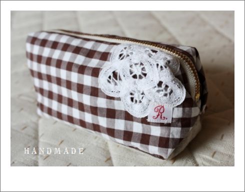 またまた、と~ってもお久しぶりです^^;; 結構前に作ったものなのですがキャラメルポーチ型のペンケースを作ったので、UPしておきたいと思います。 ピスネームは、ずっと前にヤフオクで購入したものでおちゃめなイラストがキュートです。お花の形のバテンレースは、手作り工房 MY mama さんで購入したもの♪バテンレース、可愛くって大好きです^^* yu*yuさんのレシピを参考に作らせていただきました。素敵なレシピをありがとうございました♪