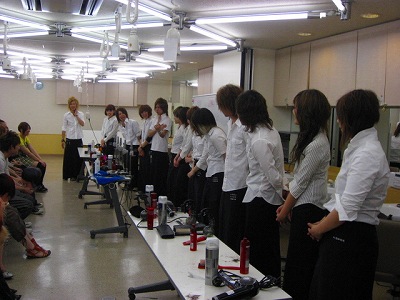 川根塾 技術発表会 4月から川根塾第5期生が始まり約3ヶ月がたちました塾生はどれくらい成長してるのだろうか? 7月4日 美容学生1年生に向けて技術披露を行った。 全員整列 リーダーの解説が絶妙にうまかった! というよりも おもしろい!顔もいいが 話もうまい!(笑)真剣に技術を行う カットしてブロー仕上げもうすっかり 慣れてきた様子だ!少し前までは 人並み以下の ハサミ&ブラシの使い方だったのが人前で3ヶ月たって こうやって披露する時にはすっかり うまくなっている!発表という場を設けることにより真剣な打ち合わせ トレーニングやはり緊張感は人を成長させるものだ! 在校生も真剣に見る 可愛い・・・うまいカット作品じゅん先生が 美容業について語る経験談 「18年がかりのチャンピオン」VIDAL SASSOONNカットコンテスト全日本優勝を18年がかり 46歳で獲得! その諦めない大事さはじめに決めたことを忘れないトレーニングの仕方意識の持ち方行動力など 何かを手の入れようとするときの大事なことを教える!興味津々の在校生は真剣に聞き入っていた!塾生の成長振りには驚かせられる!あるときを堺に急に成長する!塾生も緊張もしながらも楽しんでくれたに違いない! 最初予定では 1時間半のつもりが終わってみると 2時間半最後まで しっかり聞き入っていた在校生の皆さん勉強になりましたか?刺激を受けましたか?そしてありがとう! 熱意を込めて・・・川根塾代表 川根順史