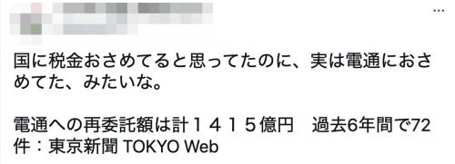 【1日】2017年の記事ですが。「ネトウヨ」「パヨク」の罵り合い、そろそろやめてみませんか?総選挙に向けたひとつの提案 #佐々木俊尚 #総選挙 #文春オンライン https://bunshun.jp/articles/-/4547?utm_source=twitter.com&utm_medium=social&utm_campaign=socialLink…posted at 11:23:55布マスクは「質より量。とにかく早く」 政権は迷走した [新型コロナウイルス]:朝日新聞デジタル https://www.asahi.com/articles/ASN506SFLN5TULFA02G.html…早さ重視がこのザマ😑posted at 11:37:51「給付金」法人に14件1576億円 経産省が委託 7件は電通などに再委託:東京新聞 TOKYO Web https://www.tokyo-np.co.jp/article/32435/posted at 12:38:57【2日】アメリカのAntifaと日本のAntifaは同団体?各国各地の支部か何かですか?反ファシズム運動の一部の過激なやり方は賛同しかねますがファシズムは容認できませんね。posted at 00:23:26RT 中抜きで皆が儲かる仕組み https://twitter.com/tanutinn/status/1267547017170923522…posted at 11:44:53「給付金」委託費 電通、パソナなど法人設立3社で分け合う:東京新聞 TOKYO Web https://www.tokyo-np.co.jp/article/32684 #posted at 11:45:42古賀茂明「黒川氏処分の“真犯人”は内閣の証拠」 https://dot.asahi.com/wa/2020060100027.html…posted at 14:53:31うまいッ‼️😆🤬 posted at 14:56:37アベノマスク配布 ブレる政府の説明 批判回避に躍起:東京新聞 TOKYO Web https://www.tokyo-np.co.jp/article/32682 #posted at 15:51:51文書は虚偽説明? 黒川定年延長めぐる公開文書 閣議決定後作成を決定前に変えた疑い 大阪地裁に提訴 http://www.asiapress.org/apn/2020/06/japan/kaizan/…posted at 18:17:33税金はこういうことに使うべき! https://twitter.com/nhk_news/status/1267720101278539776…posted at 20:38:31【3日】官邸の「反政府番組監視」 小川彩佳・和田アキ子・IKKOも対象|NEWSポストセブン https://www.news-postseven.com/archives/20200603_1567595.html… #newspostsevenposted at 14:31:05【4日】RT メンバーや議事録を公表しない案件は全て利権がらみと思うようになりました。もうやだ…この政権。 https://twitter.com/wanpakuten/status/1268163781483302913…posted at 10:22:24コロナ対策で政府と電通の癒着が次々…持続化給付金では中小企業庁長官に疑惑、「Go To」3000億円も発注は電通で決まりか https://lite-ra.com/2020/06/post-5453.html… @litera_webよりposted at 11:13:00小池都知事が延期したオリンピックの簡素化と合理化を検討すると言ってますが初めから↓コレを嘘偽りなく実行すればよかったんじゃんね https://twitter.com/inosenaoki/status/228871964251537409… https://pic.twitter.com/HiyEK55XjDposted at 12:19:42嘘つきと強欲者にめちゃくちゃにされたツケは都民が負うのか?冗談じゃないです。posted at 12:21:38恥ずかしい…😫 posted at 13:49:01【5日】麻生財務相が民度発言で釈明 「おとしめるという話とは違う」 | 2020/6/5 - 共同通信 https://this.kiji.is/641477998551467105…この人いっつもこうじゃん…😩posted at 12:42:29野党4党、休業支援法案を提出 収入8割確保、全労働者に | 2020/6/5 - 共同通信 https://this.kiji.is/641488189365437537…10万円の給付金に続き、野党の提案は直接国民のためになる!posted at 16:27:22【7日】まぁ『目指します』だから一概に嘘をついたとは言えないが……がっかりだよね。百合子さんにではないよ、彼女に投票した人たちにだよ。ちなみに私は自分が投票した人が都知事になったためしがない。posted at 10:32:14竹中平蔵パソナ会長「世界は数年痛い目を見る」 いやあなたのせいですでに散々痛い目を見ています(藤田孝典) - Y!ニュース https://news.yahoo.co.jp/byline/fujitatakanori/20200420-00174220/…posted at 10:33:20「10万円給付」支給済み世帯はわずか2.7% 関東の主要34市区を本紙が集計:東京新聞 TOKYO Web https://www.tokyo-np.co.jp/article/33951posted at 11:21:49【8日】ポイント還元事業でも電通に307 億円、倍増の政府広報費も半分が電通…安倍政権の異常な電通優遇はネット情報操作の見返りか https://lite-ra.com/2020/06/post-5460.html… @litera_webよりposted at 16:50:55【10日】官房機密費 78億円の闇/安倍政権7年 返納たった37万円 https://www.jcp.or.jp/akahata/aik20/2020-06-06/2020060614_01_1.html… 凄くないか…😨これが何故許されてしまうの?posted at 15:42:00【12日】RT悪質ですね😡 posted at 00:27:16【14日】「4日を待たずに」はなぜ削られたのか <新型コロナ検証>:東京新聞 TOKYO Web https://www.tokyo-np.co.jp/article/35425posted at 09:14:22在宅勤務が標準に 欧州は法制化の動き、米は企業主導:日本経済新聞 https://www.nikkei.com/article/DGXMZO60324760S0A610C2MM8000/…posted at 11:37:26【15日】この状況でアラート解除する意味がまったく理解できない…posted at 07:04:51にほんブログ村