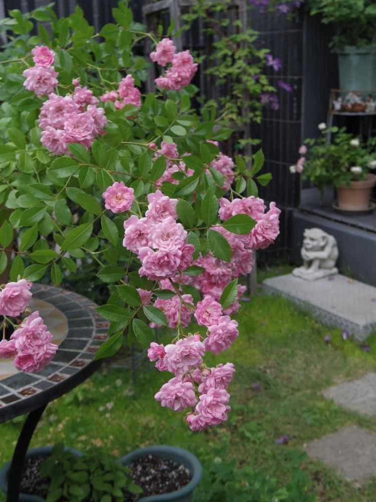 縦の写真を入れられるようになりました姫海蘭葛(ヒメウンランカズラ)今さらですが画像管理に入ってる写真の設定のマークをクリックすると写真を回転させられることがわかりました今まで日記編集の画面で直でアップロードをやれてたのでちょっと一手間かかるけどちゃんと正規ルートでやりなさいということですねとにかく続けられることがわかってホッとしました小庭のヘリテージ涼しい日が続いたので花が長持ちしてますね花びらが多いから散る時はドサドサと音がします植え替えしたときの鉢が細長かった為安定感が足りず春先の強風で何度も倒れてダメージを受けたにもかかわらずとても綺麗に咲いてくれましたアリガトウ母のバラ老人ホーム 慣れたかな...母が入所した後住んでいた家を町に返すため 台所の整理から始めたのですがとにかく出て来る出て来るいろんなもの震災で一度は全ての物を失ったにもかかわらず10数年でこんなに溜まってしまうとはこの前弟が母の家を片付けていたとき叔母さんやいとこの人達が来てくれて服や家具などを沢山引取ってくれたそうで本当にありがたいと思いました自分もいつかこのような時期を迎えた時結局片付けるのは と息子達の顔が浮かび...物はため込まず日頃からスッキリと暮らすことを意識して年を取らねばなりませんねミニバラ達小庭の入り口付近の様子黄バラのGボーダーも変わりなくモリモリに咲きました増え続けるアジュガクローバーに比べたらまだ節度がありますが(笑)花が綺麗だから間引くのも心が痛むアジュガの横には初夏の雑草ヒメジオンヒメジオンがきれいにまとまって咲いてたので残してみましたパ~っと開いている花が夕方になると一斉につぼんでいる様子が可愛い花がピンクが多いのがハルジオンそして茎の中が空洞なのがハルジオンの特徴ヒメジオンは空洞ではないらしいこの花を切ったり折ったりすると貧乏になる という言われがあるらしく怖いので確かめてはいませんが(笑)久しぶりにベランダの大掃除をしました特に汚れて真っ黒になってたエアコンとエコキュートの室外機を羽のところまで拭き掃除してずっと気になってた心の引っかかりを解消!排水の溝もウエスでゴシゴシ棚の下や床の隅に溜まってた落ち葉も掃いてスッキリこれで梅雨が始まっても大丈夫球根植物の鉢もそろそろ仕舞わないとベランダの多肉達この前植え替えした徒長苗も根付いたみたい掃除を終えた後多肉を眺めながらベンチで飲むコーヒーが至福ですねこの日は風がとても心地良かった蚊もまだいない...次の掃除は窓ガラスだなビアホップ