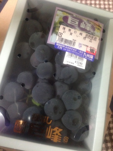 夕方、隣町の百貨店に立ち寄ったらな、なんとぉぉぉぉ~、化粧箱入りの巨峰2房が980円の値札が付いているじゃぁーありませんか(さっきまで、3240円で売られていたよーだ・・・w)きっと売れ残りの消費期限間近なんだろうけどこんな物、オイラならば一日で消費してしまうから無問題だよんやっぱ買い物に行くならば夕方だよねっ