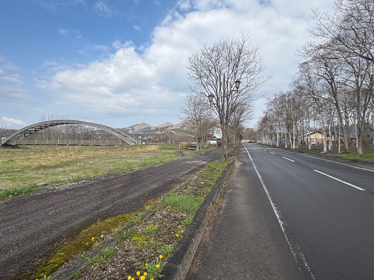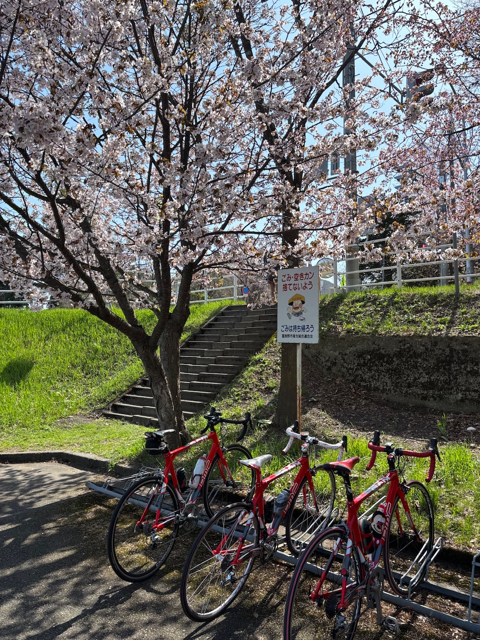 富良野鳥沼公園隣の駐車場富良野の桜見にきたよ駐車場にも咲いていたこれは期待できそうな感じだけど風がね、強すぎるまあとりあえず、スタートしてみよか本日は三つ子ちゃんです富良野の白い山に赤い三つ子が映えるわね〜ベベルイ経由で麓郷に向かう十勝岳がきれいだし奥の真っ白い大雪山もきれい畑の中を行くので農作業のお仕事車と出会える上富良野町さあ、登るよ〜やや追い風で登れるよラッキーここはまだ中腹景色の良いところは写真を撮らなきゃねやっと下りだぁ畑が緑になりつつある緑と青空と白い山つつじ咲いてる足の白いウサギを見たけど写真撮れなかった野うさぎなんだろうか麓郷のガラス館でトイレ休憩のあと道道544号線の桜並木に向かう川沿いで気温低めなんだよね〜桜咲いてるかなぁうわぁ、全然咲いてなーーーい!そうか、やっぱりここは気温低いんだろな日当たりとかも関係するのかちょっぴりピンクっぽいけど花はまだだったわー下りが向かい風で疲れたよーこのあと国道38号線の桜を見に行く予定だったけどそちらも咲いていないとの情報そうか、咲いてないのかんじゃあ鳥沼公園に帰るか風が強くてしんどいしなまず道道298号線そして車のいない農道へ最後は超追い風〜追い風なら100キロでも200キロでも乗れそうな気分結局今日はスタート地点のあたりが一番咲いてるっていう残念な結果でした〜見たいところが咲いてなかったわ桜とお天気と休日が重なるのって難しいよね…ランチは白樺ジンギスカンいつ来ても美味いデザートは六花亭今日は連休なのに白樺も六花亭も空いていた今年の連休も自転車三昧で楽しゅうございました腕の付け根あたりが軽い筋肉痛なんだけど2日間峠の下りでブレーキ握ってたからかな〜