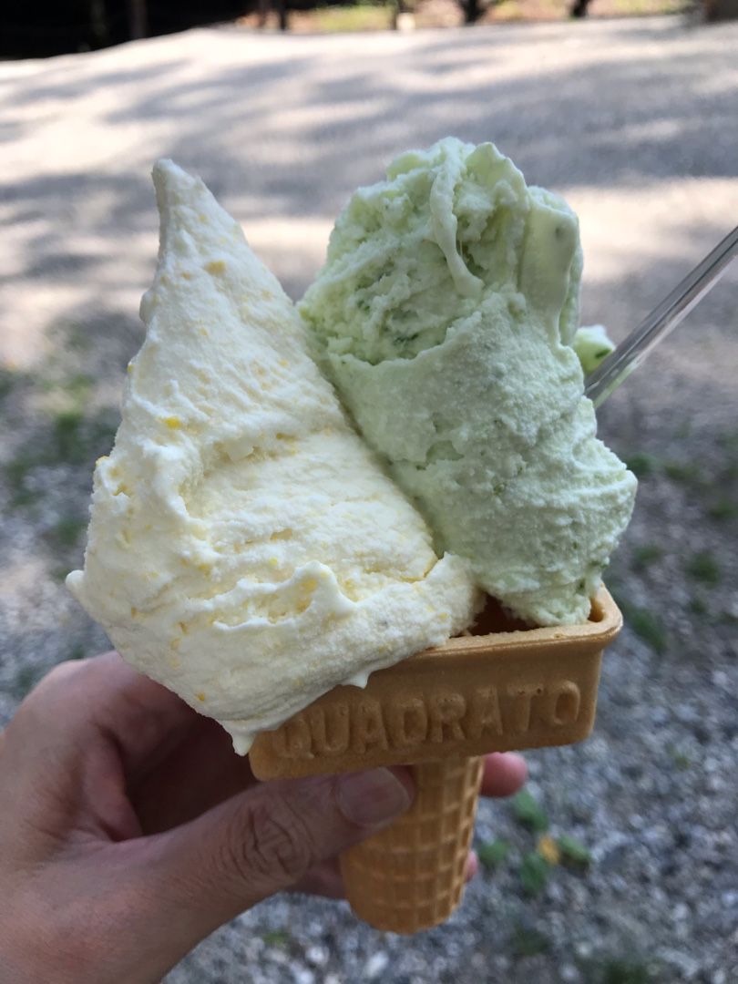 帰りに富良野チーズ工房でソフトとジェラートご褒美