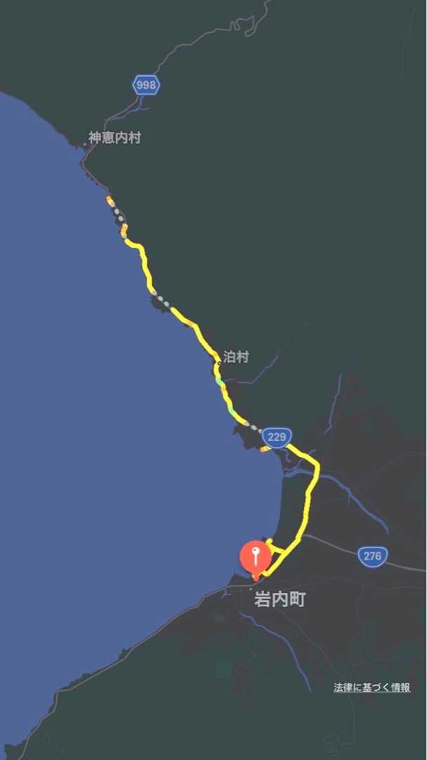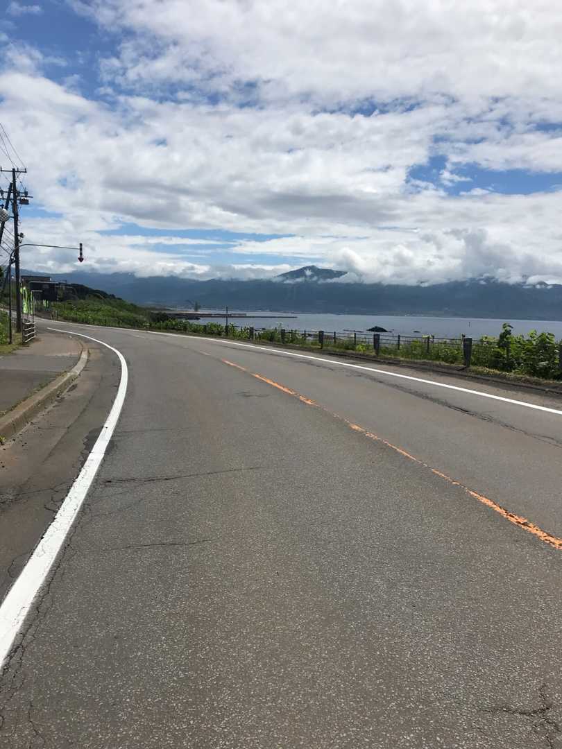 海岸線を過ぎて寿都の風車が見えてきた頃