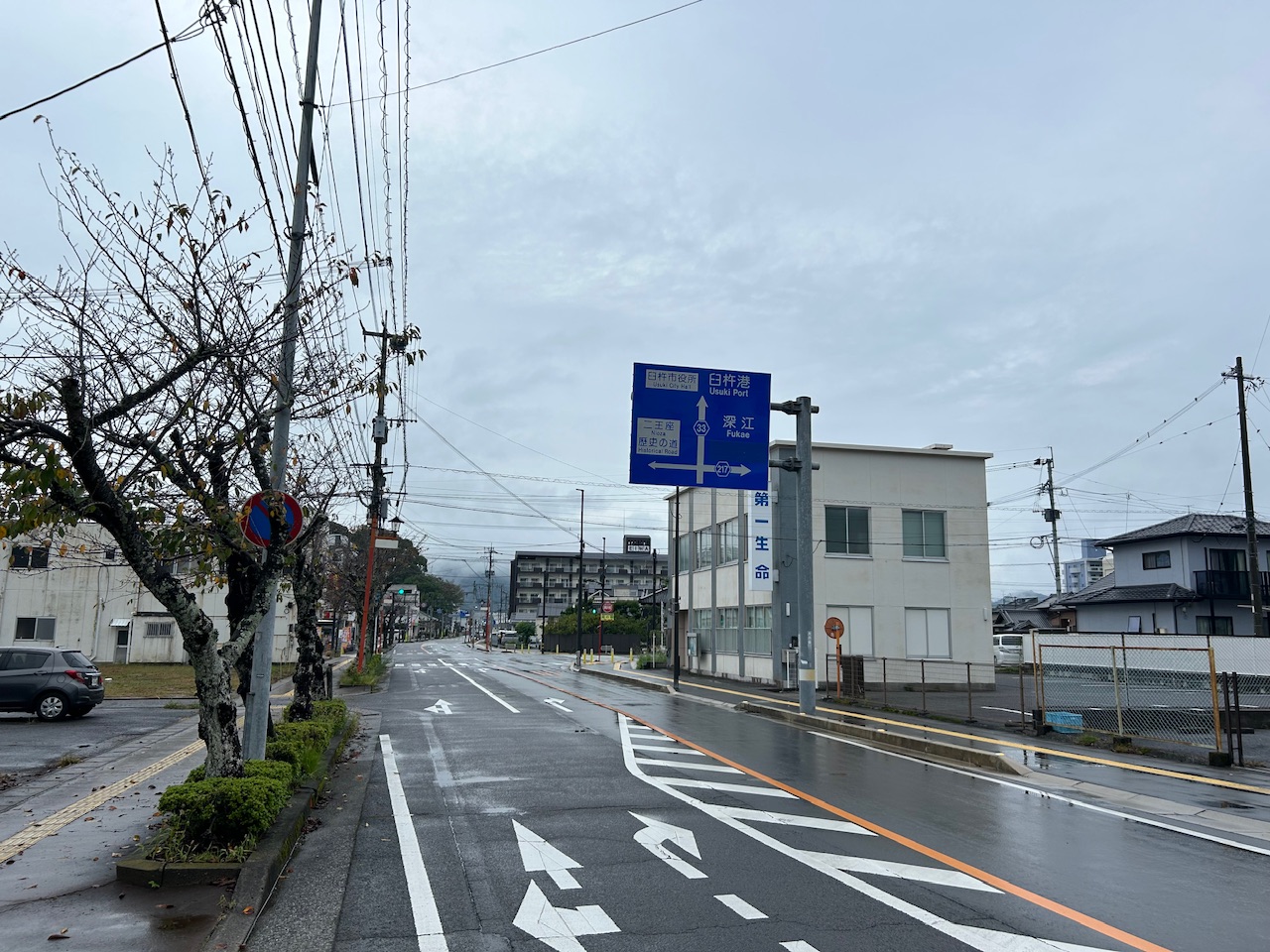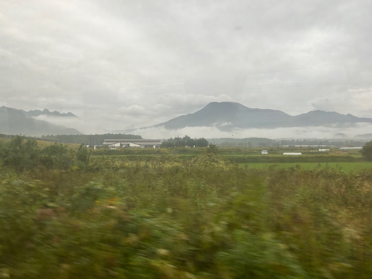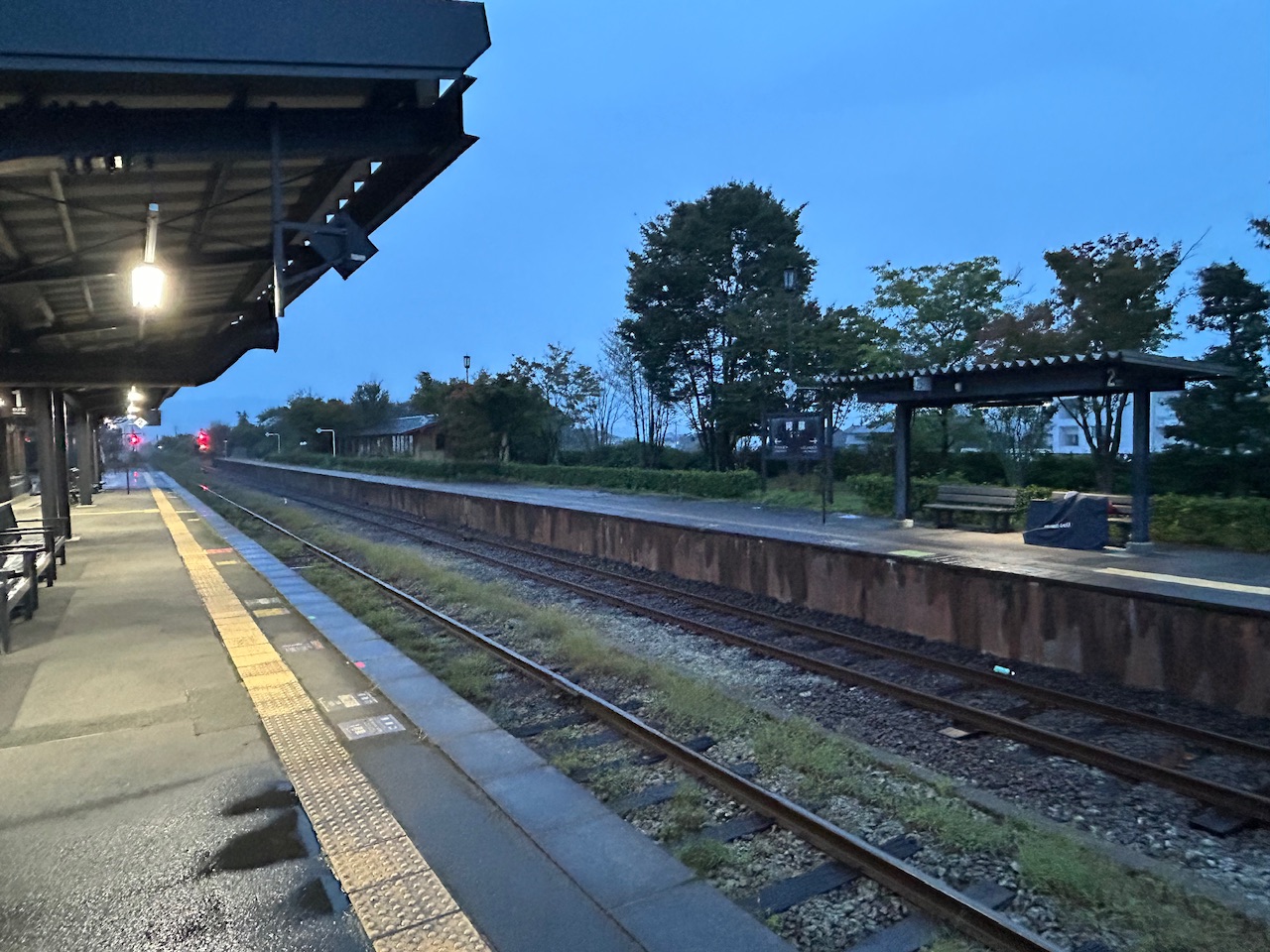 では、雨で真っ暗の中阿蘇駅まで行くよ!