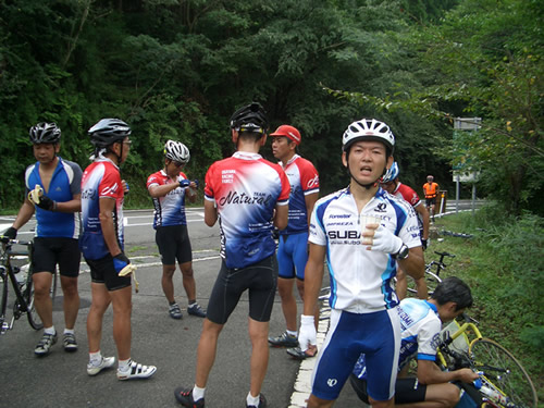 本日は6時起床。年甲斐も無く、緊張してあまり寝付けなかったのでチョット寝不足気味で1日が始まりました。シンとマックスバリューで待ち合わせをし、アゼリア館に向かいました。7時過ぎに到着すると、すでにイッパイの人!!みんな用意するのが早いようです。私が着いた頃には早くもスタートしてる人が居ました。「Natural」のメンバーの方が来られていたので挨拶し、それからシンと2人で7時40分頃にスタート。したのはいいですが、直後から登りの開始です。アップも済んでいない体にいきなりの登りは堪えます。ただスピードはかなりユックリ目。あくまでサイクリングの気分でいきます。第1チェックポイントまではシンと話しながらダラダラと進み、そこからチョットずつペースを上げていく。途中「イシイサイクル」の列車に便乗し、後ろでカナリ休ませていただきました。シンはこの列車が気に入らないらしく、後ろから来た早い列車に乗り「次のチェックポイントで待ってる」と言い残し行ってしまった。第2チェックに行くまでの途中の登りで「natural」のメンバーに追いつかれた。しかし先ほどから誰とも話してなかった私としては、話し相手が出来てとても嬉しかった。しかしここは登り、そんな悠長な事を言っている場所ではありませんでした。○森さんは年齢を感じさせない軽快な走りで登っていきますが、和気支部長さんは珍しく苦しそうに見えました。いつも凄く元気なんですが・・・。第2チェックポイントにはエイドステーションがあり、お茶やバナナを頂きました。多くの人が休憩しており、ごった返していました。第2チェック後もまた登りが続きます。ここから最後までずっと「natural」の方々と列車を組んだのですが、平地では一緒に走れても登りではどうしてもバラけてしまいます。こればっかりは速い人、遅い人があるから仕方ないと思いますね。第3チェックに行く途中、誘導の方から「この先の坂を登ったら最後まで登り無いから」と言われ、先ほどまで登り続けて足がだるくなっていたので、もうこれでキツイのは終わりかと思い安心してしまいました。しかし、この登り、いつまでたっても終わりません。行けども行けども下りが見えてきません。なんとか頑張って頂上に着いた時思いました。「だまされた、これって坂って言うか山じゃねーか!」結局300mくらい上がりました。第3チェックに居た辻本さんがとても嬉しそうに「中々良い坂だったやろ」と皆に声を掛けてました。辻本さんって、苦しそうな姿見るの好きですよね~。第3チェック以降は本当にひたすら下り。メンバーがパンクするというアクシデントもありましたが、殆どシンが引っ張った列車で第4、第5まで順調に通過。第5以降はアゼリア館までゆるい登りのみ。各自各々のペースで登っていきます。私もかなり足に来てましたが、大体30km/hのペースで登りきれました。最後シンがアタックを掛けてきましたが、ハンガーノックだったらしく私を千切るまでのスピードを出せず振り切れなかったようです。結局、私とシンと「natural」の方々がほぼ同時にゴール。終始一緒に動いたメンバーでした。みなさんお疲れ様、ありがとう御座いました。サイクリングにしてはペースが速く苦しい場面もありましたが、中々良い練習になりました。今日感じた私の欠点は、登坂力の弱さと、トップスピードの無さです。登坂はこのまま山で練習するしかなさそうです、スピードはもがきを入れた練習を加える必要があるようですね。メニューを考えながら走るようにします。結局走行中に雨は降らず、帰りだしてから降りだしました。天気も曇りだったので走りやすく、コンディションに恵まれたイベントになりました。また来年も出れるよう練習しなくちゃね☆走行距離:120.1kmAVE:27.0km/h上昇:1070mPOWER PRODUCTION パワープロダクション BCAAチュアブルタブレットサイクリスト用の仙豆みたいな物です。