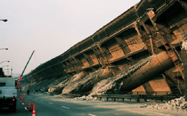 (倒壊した神戸高速の陸橋、以上の資料は阪神高速のウエブサイトより)