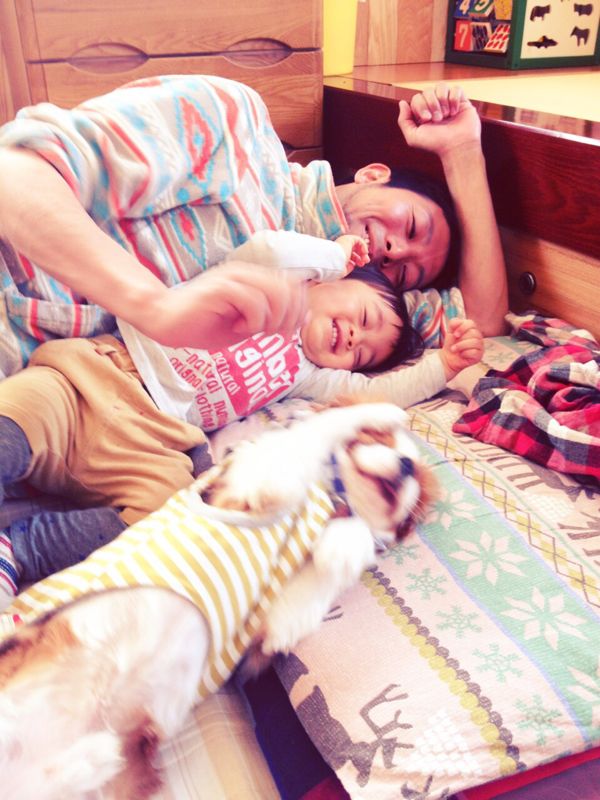 ゴロゴロする、親子^ ^パジャマ姿でごめんなさい(笑)にほんブログ村