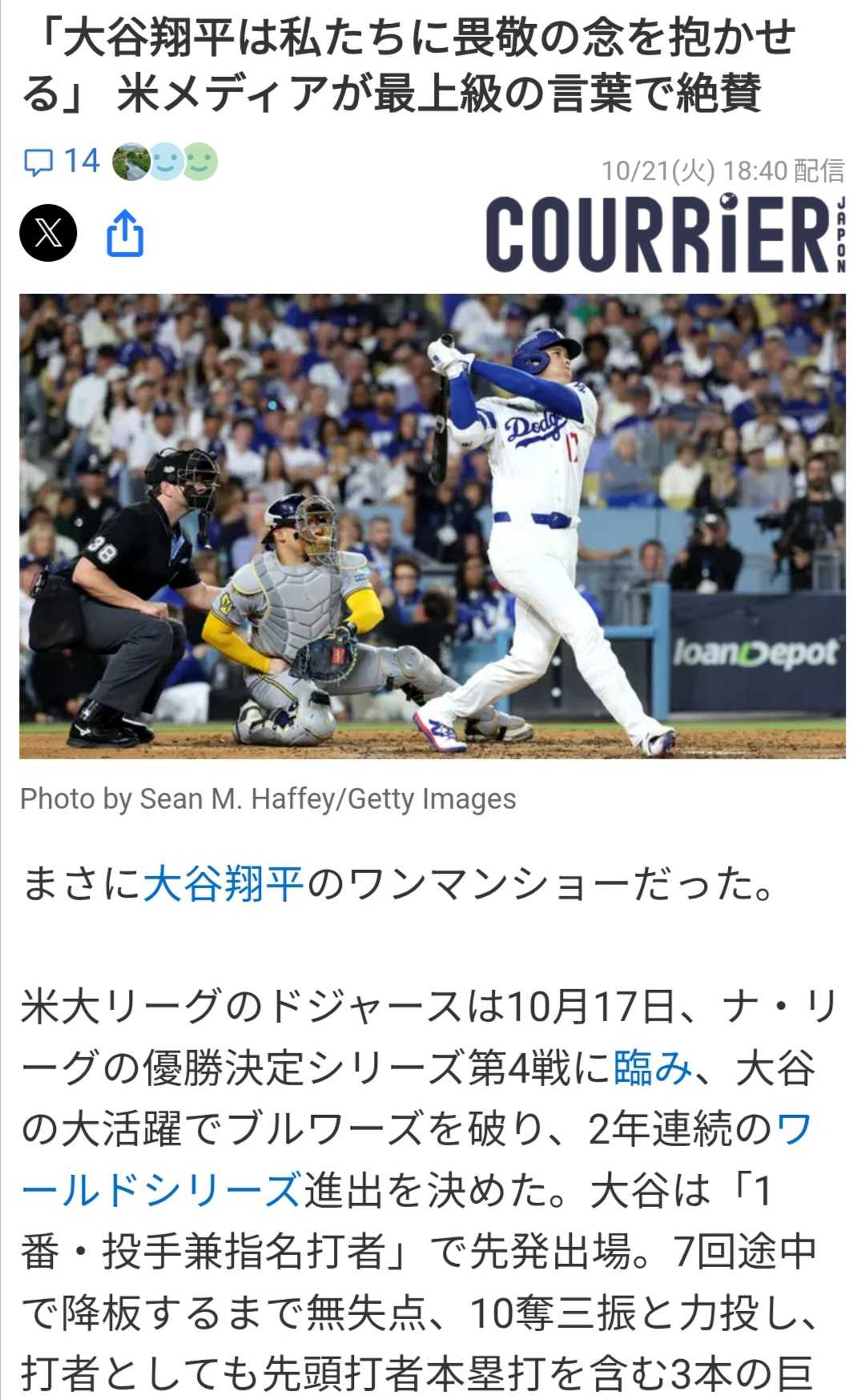 😔地区シリーズでは、調子が悪かった 大谷翔平ですが、バッティングの調子のサイクルを考えると、そろそろ上がって来る予感がします。🧐成るようになる!無我無心自然体で集中してスイングすれば、🧓結果は後からついてくる❗ ル▪シュワーパー ............ ↗️ の記事より、抜粋❗🧐
