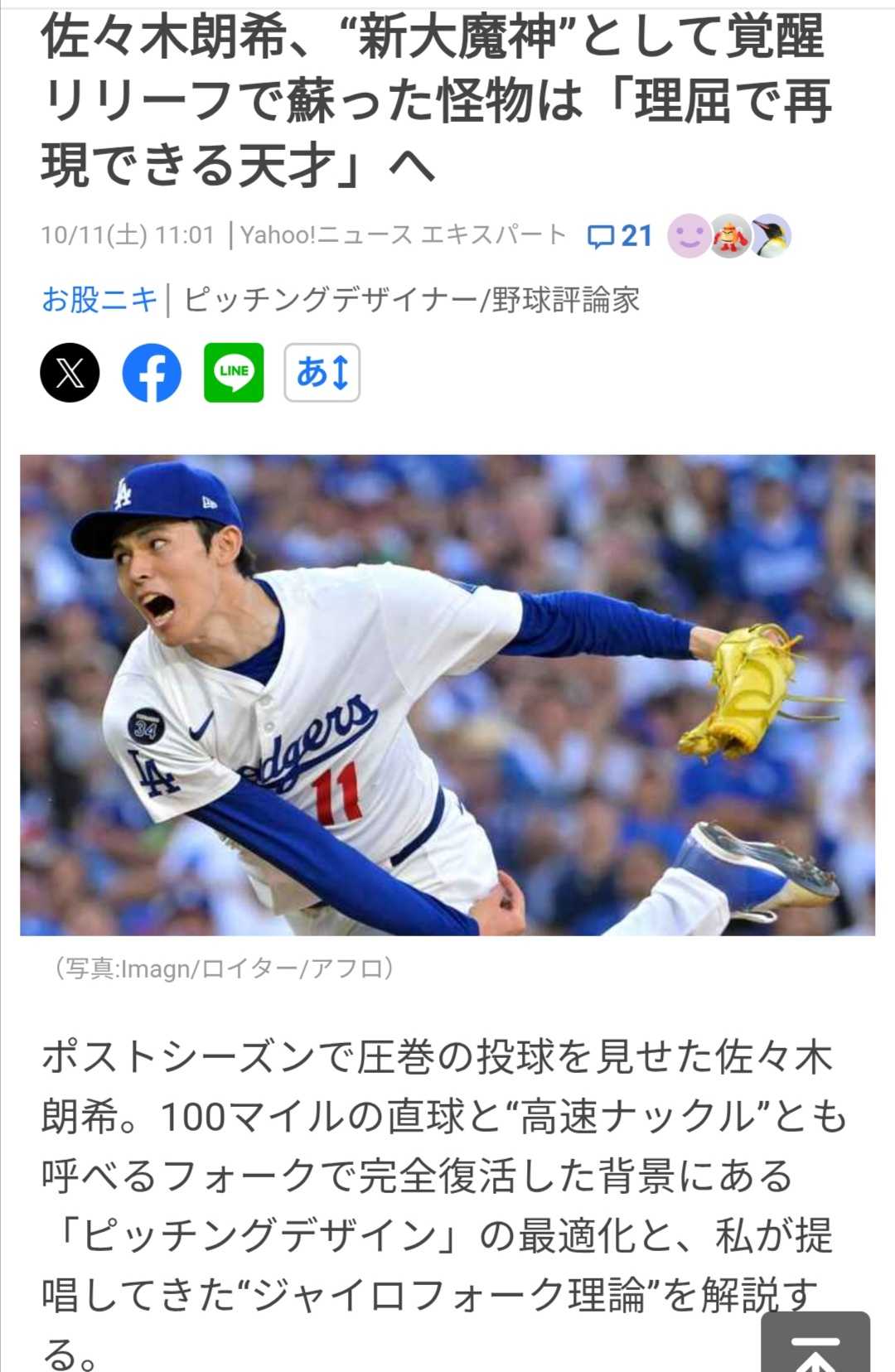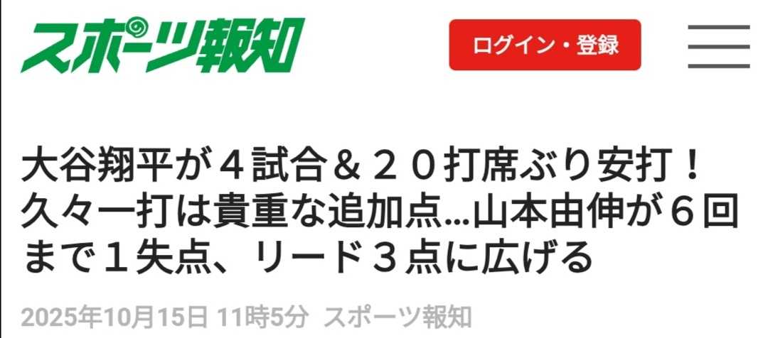 🧓 ⭐✨スポーツ報知より、抜粋❗🧐