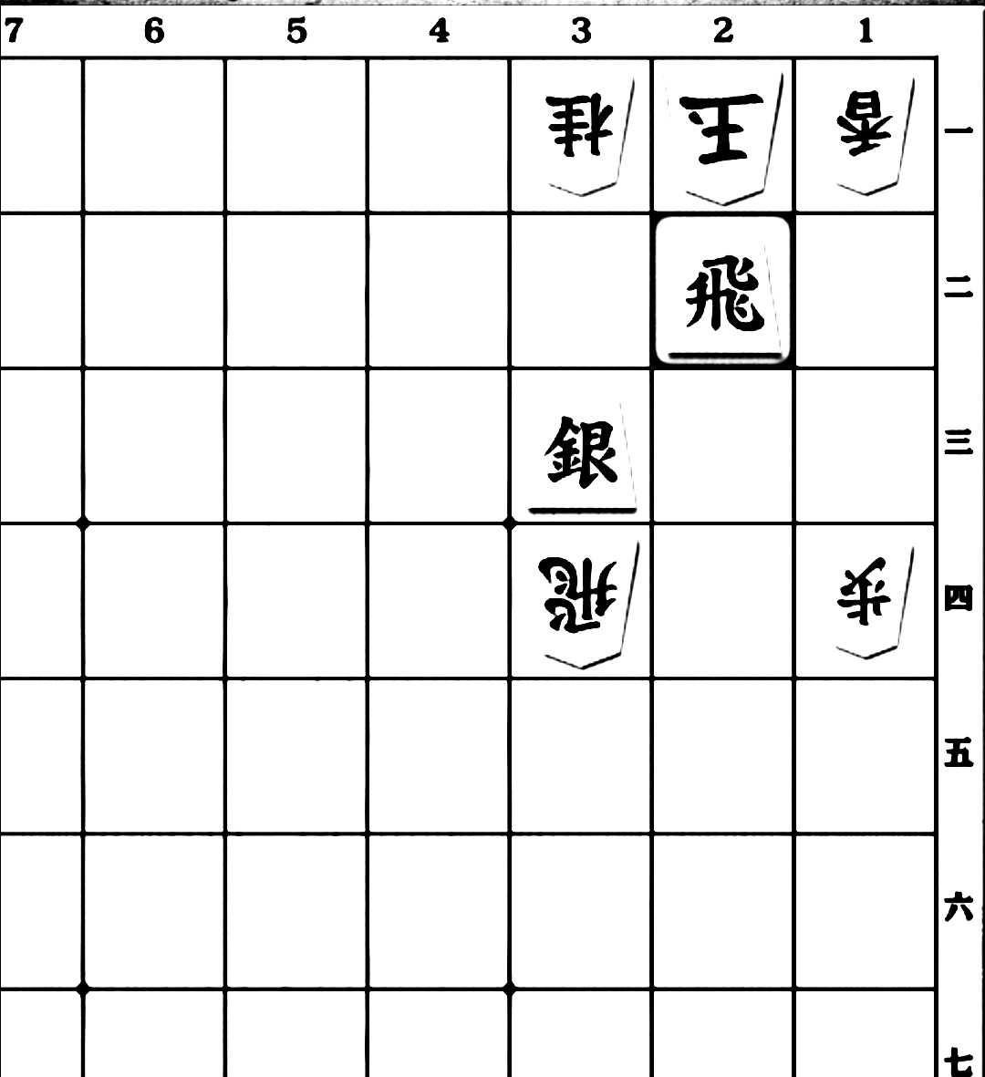 🤔 ★2一角成り ☆同玉 ★2二飛車 まで三手詰め 持駒 飛車×1