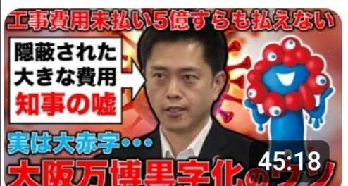 😔嘘っぱちと言ったらきりがない❗維新だけではない❗両 民主党、参政党、公明党、他にも言ったらきりがない❗大阪万博は、売上だけで計算して 建設費は、計算に入れて無い❗なので、実際は 大赤字だ❗🧓