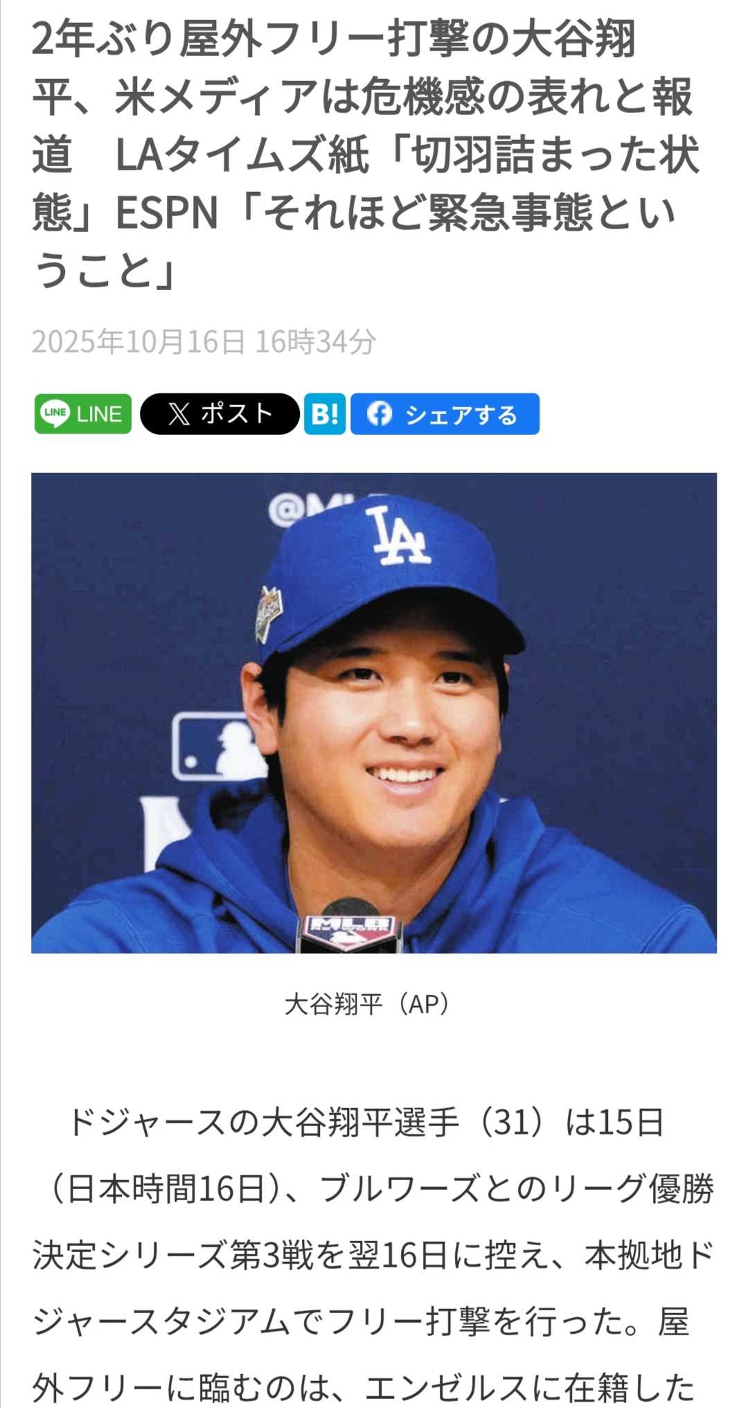 🧑 大谷翔平スランプ突破❗🧐れ ↗️ 東スポWEBより、抜粋❗🧐