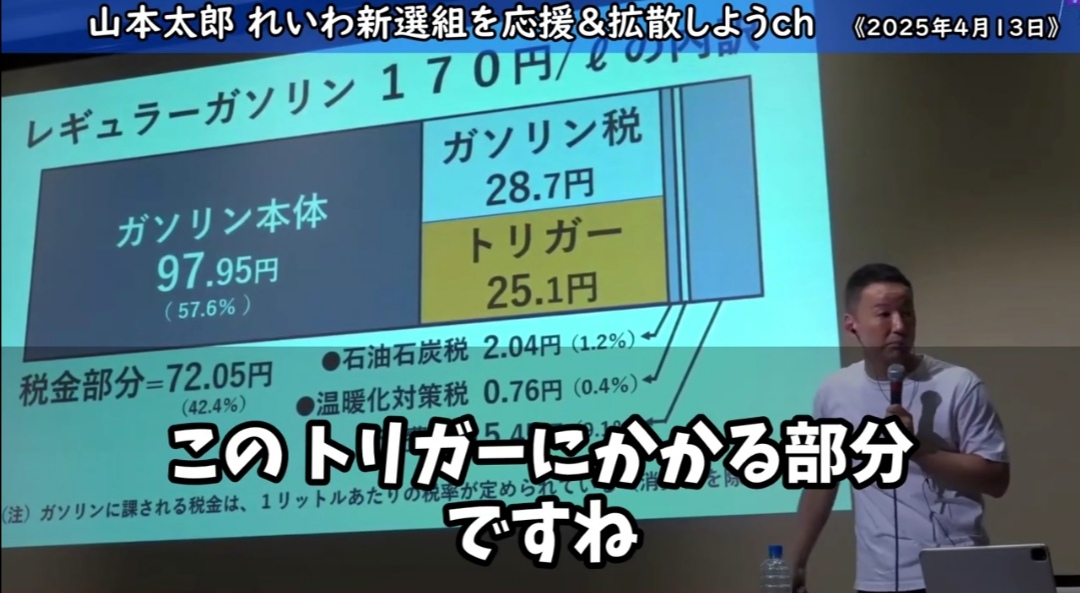 日本語知らねーのか❓暫定税のトリガーを、何十年暫定してんだ❗ ガソリン税なども、官房機密費に回り、裏金議員の小遣いにされている可能性が有ります👦🧓