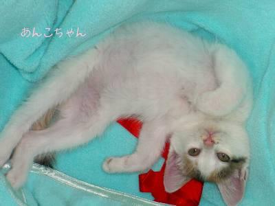 久々の日記です。ここ一ヶ月は体調をくずしていてジムにも遠出にも行かず、お家で大人しくお留守番の日々でした。日記を書いていない間には色々なことがあったのですが、その中でもトップニュースはやはり....『ねこちゃんを飼いはじめた』事我が家に来てもう一ヶ月になる『あんこちゃん』だーりんが職場の近所で捨てられていた子猫4匹を拾い、うちの1匹が我が家に来た訳です。ちなみに他の猫ちゃんたちも貰い手は見つかり今は皆幸せに暮らしています。ところで我が家のあんこちゃん。獣医さんによると我が家に来た時で大体生後1ヶ月弱、体重も400グラムでした。今では体重も1キロあり元気ありあまってあばれまくりの毎日。(私は傷だらけ)それとダイエットですが、ここ1ヶ月ジムにも行っていないしご飯ももりもり食べてはいますが体重は変化なしです。ちゃんと維持していま~す。
