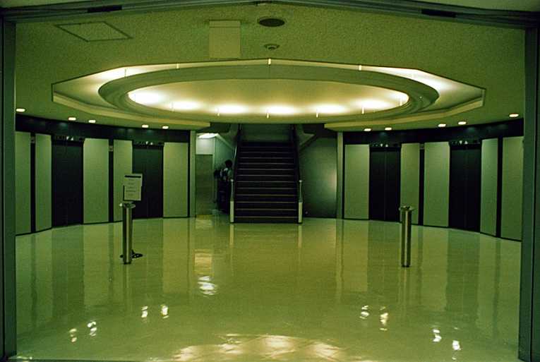 さて内堀通りに沿って、上に並べた写真を撮りながら正面玄関へとやって来ます。けっこう長いですよこのビルは。角から数えて150m位は優にありますかね。10段ほど階段をトントントンと上がるとオートドアがタイミング良く開いて「よ~こそいらっしゃいませ」と言われているような感じ・・・。現在はバリアフリーが標準化されていて階段でアプローチする建物なんて望むべくもありませんが、建物に入って行く際の緊張を呼び起こす心理的効果はこの10段ほどの階段には確実に潜んでいますよね。