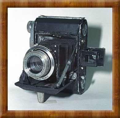 私の蛇腹カメラ初体験は、中国製距離計連動の”海鴎203”というカメラでその顛末はこのコンテンツの「140=大陸のカモメ(海鴎203)」に書き込んである通りですがその後、日本製の「Welmy Six」をいじってみて今度は、目測蛇腹カメラの面白さに目覚めてしまいました。両機ともブローニー判なのですが、何と言ってもレンズを収納して折りたたんだ状態の薄べったいコンパクトさはスプリングカメラの最大の特徴で、ジャケットのポケットなら容易に入れて持ち運ぶことが出来ますね。 これはものぐさな小生には、もってこいの利点で普段の外出でも気軽に持って出かけることが出来ます。これが同じブローニーでも、二眼レフとなるとちょっと気軽にというわけには行かなくなるでしょう。というわけで、近頃蛇腹式カメラが気になってしょうがないんですね。どうせこの沼に填るんであれば歴史的に辿った方が理解しやすいかもと、次に選んだカメラが今回の主役「Kodak NO.2 FOLDING AUTOGRAPHIC BROWNIE」という何とも長い名前のカメラなのであります。こんな名前はアメリカ人ならいざ知らず、日本人には一度や二度聞いたくらいでは覚えられません。 蛇腹カメラの歴史と言うことになると、それこそ乾板を通り越して湿板の時代までさかのぼってしまうわけで、それでは大事になってしまいますのでそこまでは遡れません。では何故このコダックのカメラに目が向いたかというと、「ブローニー」がキーワードだったのです。ブローニーフィルムだったら現在でもまだに手に入りますからね。 文献によると1918年、米国コダック社がこのカメラの開発に合わせて、120型ブローニーフィルムを最初に発売したとあります。そうなんです現在まで生き残ってきた120型ブローニーフィルム誕生のきっかけとなったカメラがこのアメリカ製「Kodak NO.2 FOLDING AUTOGRAPHIC BROWNIE」というカメラだった訳です。 戦前、 戦後そして現在まで、いろいろなフォーマットのカメラとフィルムが誕生しましたが、現在及び未来へと確実に残って行くであろうフォーマットは、ライカ判とブローニー判なのではないでしょうか。日々何気なく使っているブローニーフィルムではありますが、何と105年も昔のこのカメラが120フィルムを使う最初のカメラだったんですね。全てを収納すると、とても69フォーマットのカメラとは思えぬほど小さくペッタンコになってしまいます。このコンパクトさが蛇腹のいいところ、止められません! さて、このコダックのカメラは蛇腹式ではあるのですが、いわゆるスプリングカメラではありません。名称にもあるようにフォールディングカメラなのです。スプリングカメラのように小さなボタンを押すと前蓋が開いてレンズが飛び出して固定されるのではなく、前蓋を開けて置いてから2本のレールに沿ってしずしずとレンズ部を引っぱり出してセットするのです。この辺の所作はいかにも写真器という感じがしてワクワクします。 元々ロールフィルムの開発の狙いは、写真を職業とする人たちのためではなく、一般市民に写真機を普及させるために開発したんですね。なのでこのカメラを仔細に観察するとその辺の狙いが見えてきます。まずフィルムの装填ですが、カセット式の光学部分がそっくり外れますので、あっけないほど簡単に女性でも子供でも出来ようになっています。何一つコツや器用さなんていらないんです。これが100年も昔のカメラとは思えないほど合理的な設計がされています。「オイッ、そこの裏蓋外してゴチャゴチャやってるライツだかライカっていう奴、良く見習っておけっ!」と言いたくなるくらい上手な設計です。 フィルムの装填が終わると撮影にためのレンズを引き出してくるのですが、2本のレールに沿って最初のラッチで止まる位置があります、この位置に1.5ミリほどの米粒より小さな字で30メートルと指標が打ってあり、いわゆる近代のカメラでいうところの無限遠の位置になっているのです。更に2ミリほど先にラッチがあります。この位置にも指標があって2.5メートルと表示してあります。この位置が最短撮影距離なんですね。 というわけで、このカメラは最短と無限の2段切換ができるのです。スバラシイ!! それじゃ5メートルの場合はどっちにセットするの、なんてことは聞かないで下さいね、私にも解りません。要は家族の肖像を撮る場合は2.5m、景色を撮るときは30mでということなんでしょう。どうですファミリーカメラとしてはこれで十分ではありませんか。構造は、光学部分とフィルム室部分の二つのユニットからなっています。 今度はレンズの周囲を見てみましょう。レンズはシャッターを挟んで、前後に1枚ずつの2枚構成なんですが、このようなレンズ構成は何というのでしょうか。私の経験では、もっともシンプルなものです。レンズボードのてっぺんに機関車のライトのよう物がありますが、これファインダーなんです。上から覗いてみると、何か見えるのですが何だか小さすぎて