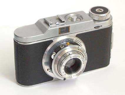 日本は昭和20年の敗戦時、それこそ家内工業から重工業まで全ての領域で本土爆撃を受け、工業でモノを生産するという行為そのものの息の根を止められて無条件降伏をしたわけですから、終戦当時はどこもかしこも廃墟同然、人々もぼろ雑巾のごとく疲弊していたはずです。しかし、米占領軍の監視下でそのような状況の中、1年経つか経たないかで日本の工業は起きあがろうとという鼓動があちらこちらから見え始めます。 例えばカメラ製造に焦点を当てると、昭和21年には早くも昭和光機の「レオタックス・スペシャル」、小西六の「コニカ1型」、千代田光学の「セミミノルタ3A」が誕生しています。翌22年になると、千代田光機の「ミノルタ35 I型」、光学精機の「ニッポン」、理研光学の「ゴコク・リコール」(ベスト版)、千代田商会の「ボルティ」(ボルタ版)などが出てきました。こうした先人達の生命力というかバイタリティには心底敬服してしまいます。 このタイトル写真をご覧ください。これは1949年にチェコスロバキアの”ドルオプタ”という会社で作られた「Vega」というカメラです。私にとっては同じ1949年(昭和24年)生まれということで、何となく因縁めいたものを感じてもう随分前に購入したモノです。早速使っては見たものの尖鋭度は全くと言っていいほど芯が抜け、カラーで使うと色が黄濁するなど時代が時代だけに大した物ではないと棚の奥で埃を被らせていました。 この「ベガ」が生まれたチェコスロバキアも1945年にナチスドイツの占領から開放され、自由になると思いきやソビエトが手を伸ばしてくるんですね。このことがチェコの人々にとってどうゆう影響があったのかは計りしれませんが、時代に翻弄されたことはその後の歴史を見ても分かります。日本と同様に戦後の早い時期にこの様な綺麗な工作がされたカメラを作っていたチェコも優秀な人材が多くいたことは明らかです。このカメラを含め、チェコのカメラについてあまり多くの情報を持っていないので詳しいことは分かりかねますが、有名な「フレクサレット」をはじめ、ドイツカメラをも凌ぐほどの丁寧な作りで良く写ることは共通した特徴なのですが・・・。 さて、同じドルオプタの「エタレッタ」というカメラが存在しているのですが、このカメラの写りが実に素晴らしい!そして、何と搭載されているレンズが私のベガと同じ「ETAR 50/3.5」ではありませんか。『えぇ~、そんなバカなぁ~・・・』、確かに「エタレッタ」はこの「ベガ」よりは新しいカメラですがレンズ名称は同じだけどレンズは全く別物なのかなぁ~・・・!? あまりの写りの差に愕然となった私ですが、気を取り直してカメラを点検してみることにしました。うぅーん、原因はここかぁ~、何とレンズの中玉がうっすら汚れで曇っています。おまけに前玉を回転させて焦点距離を合わせるのですが、これがかなりズレていました。これではちゃんとした写真が撮れるわけがありません。このカメラを手に入れた当時はレンズの分解はもとより距離の調整法など自分で出来るなんて夢にも思っていない頃でしたから、ズゥ~とそのままで放ってあったんです。早速バラして全てを調整し直しました。 このカメラは、仕組みから操作に至るまで実に趣きがあります。全体的なプロフィールはトリプレットの50ミリ、f3.5の沈胴式レンズを備えた目測式35ミリカメラです。フィルム装填のためにはボディ左横に付いているラッチを上げると裏蓋がそっくり外れます。巻き取り側にはスプールがありませんのでマガジンが必要です。今となっては純正のマガジンなど入手するのは困難ですので市販のプラスティックマガジンで代用しました。これで難なく使用することが出来ます。上の装填状態の写真をご覧ください。このフィルムに見覚えがある方は70代以上でしょう。(中身は、フジのアクロス100の長巻から入れ替えて使ってます)その上の接眼レンズが実に小さいでしょ、直径2ミリほどしかありません、瞳の直径より小さいかもしれませんね。しかし、これでしっかり撮影範囲がそれも綺麗に見えちゃうんです。小さくて見難いことでは右に出るモノがいない「リコーハイカラー35」の接眼レンズより遙かに小さいのですが見えは逆にハイカラー35より良く見えるんですから不思議です。 撮影するときは先ず沈胴されている鏡胴を所定の位置まで引っぱり出し反時計方向に捻ります。そして、フィルム巻き上げノブの前に付いているストップレバーを引きながらフィルムを巻き上げます。さらにトップカバー上のフィルムカウンターをノブで0にセットしたら撮影開始です。絞りと速度を任意にセットし、シャッターチャージをします。勿論、沈胴レンズなのでレリーズボタンはリモート式ではなくシャッター上部にダイレクトに付いているんです。 従ってあくまで優しくソフトに操作しないとブレブレ写真を量産することになってしまいますよ。スマホに付いているカメラですら超鮮