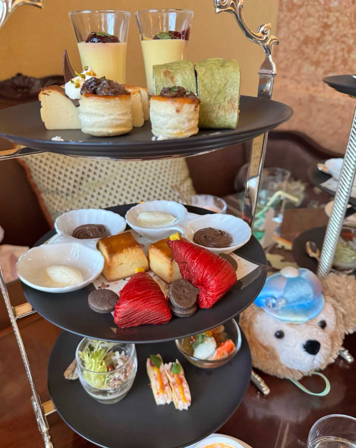 宿泊特典で予約していたドリーマーズラウンジのアフタヌーンティーセット🫖リルリンリン風のパンや、デザート♪かわわ〜(っ'ヮ'c)❤️えだまめちゃんには、アイスクリーム🍨単品