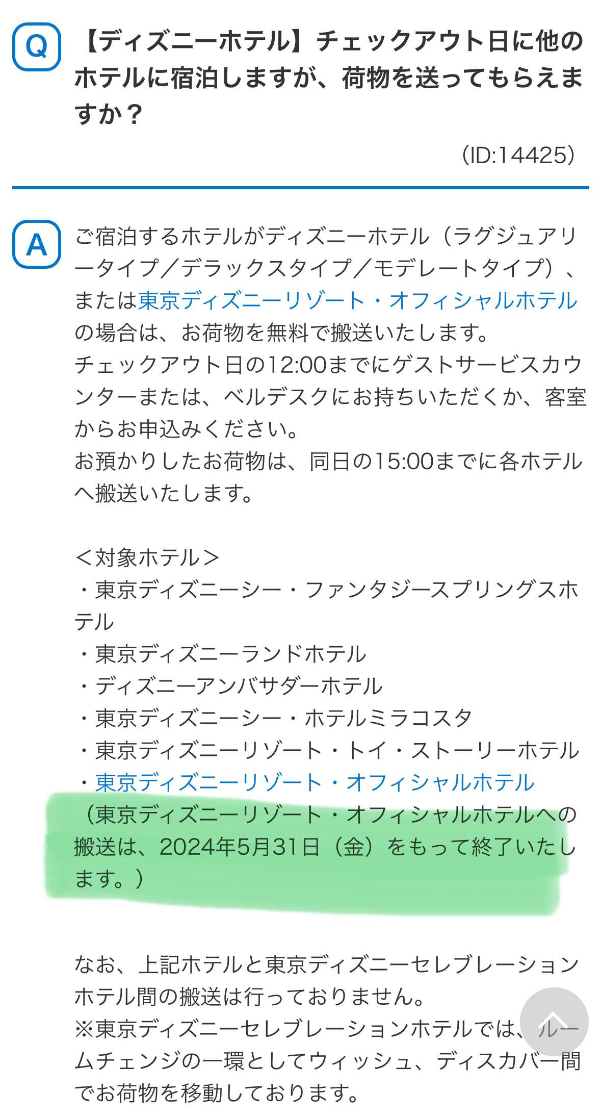 ランホやミラコスタなど→オフィシャルホテル(ベイサイドエリアにあるホテルたち…)との荷物の搬送サービスが終わるんですと😱