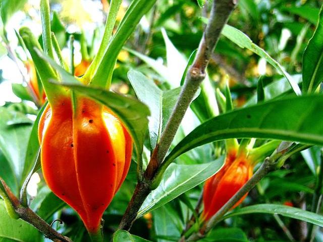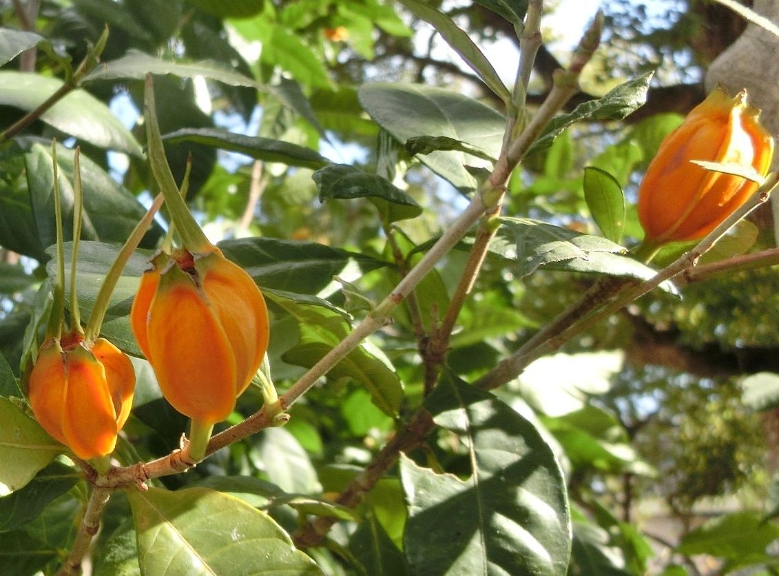 [名前の由来]・・・果実が熟しても開かないので、口無しといわれます。