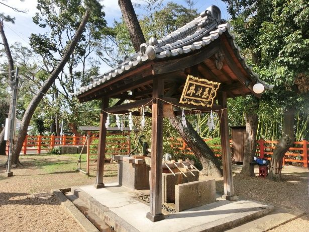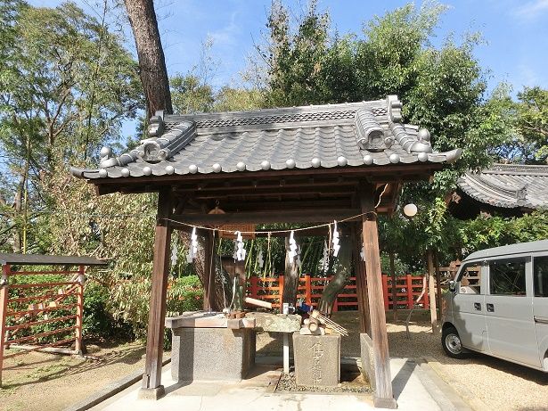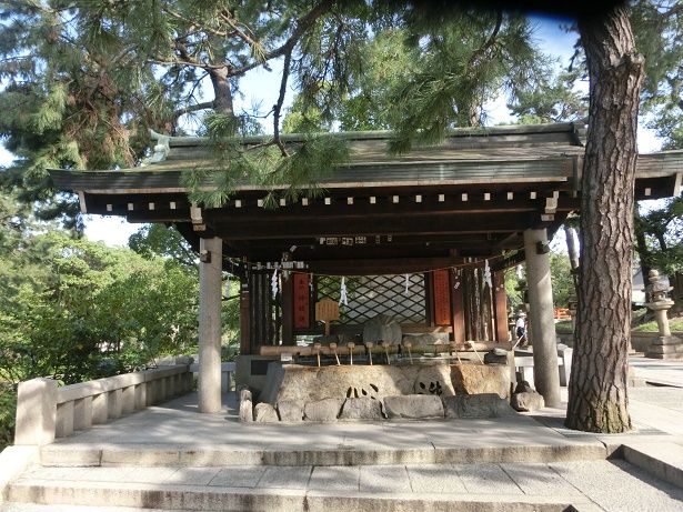 太鼓橋 の上から眺めながら、ゆっくり降りたら、左に手水舎が あります。