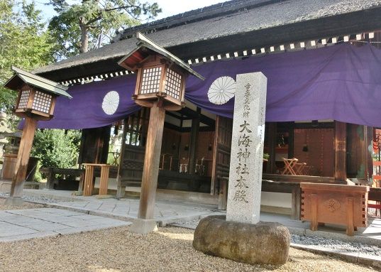国の重要文化財。山幸海幸の神話で有名な海の神・豊玉彦、豊玉姫を祀る ​ 大海神社 ​