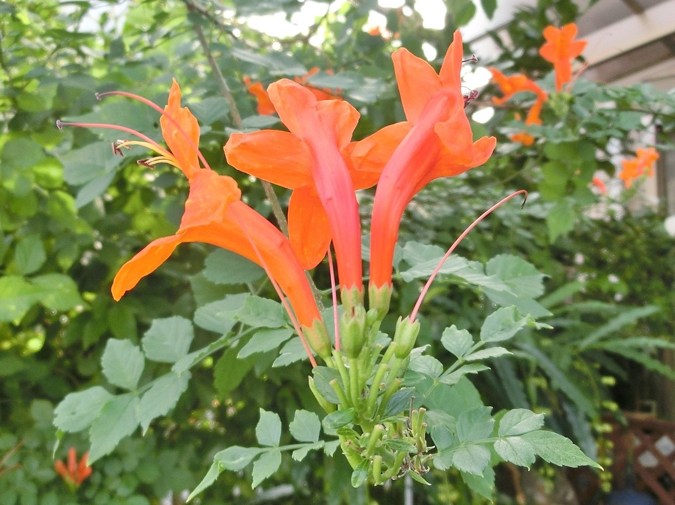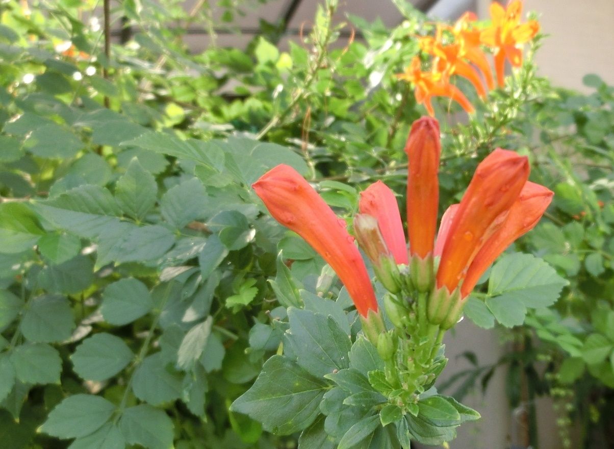 ノウゼンカズラに近い仲間です。 花期は夏から秋にかけて咲きますが、