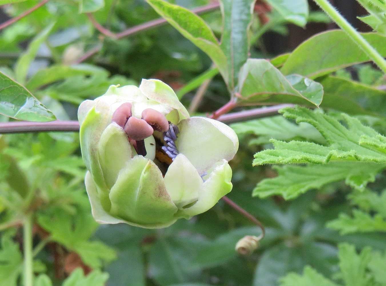 英名はパッション・フラワーで、雄しべの花柱をキリストに、