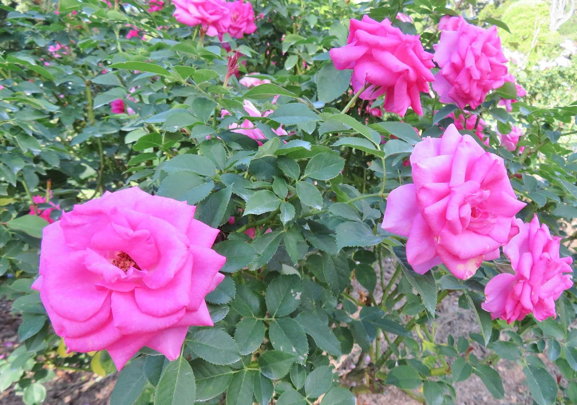 蛍光を放つような鮮明な濃ローズ色でよく目立つフロリバンダ系の花壇向き