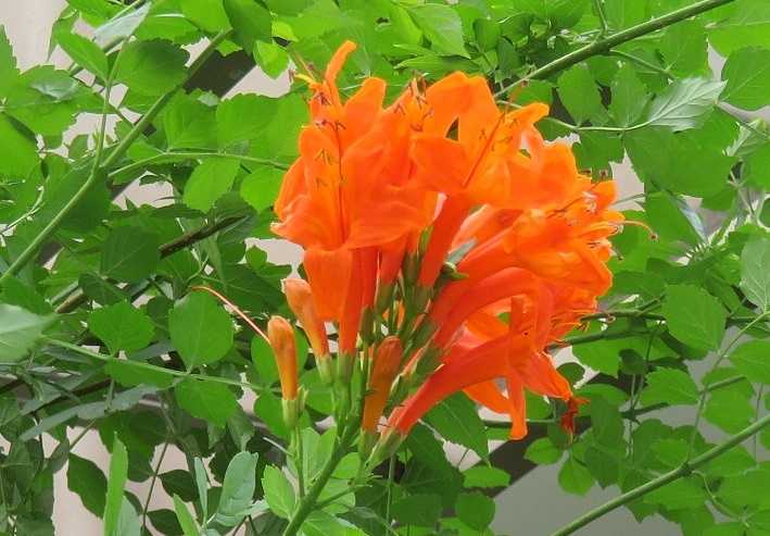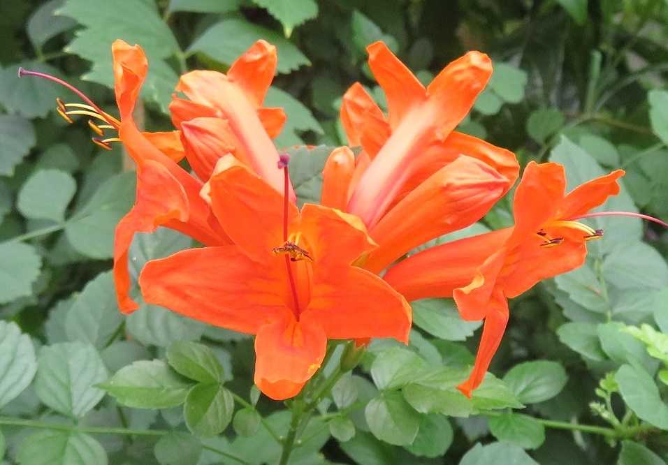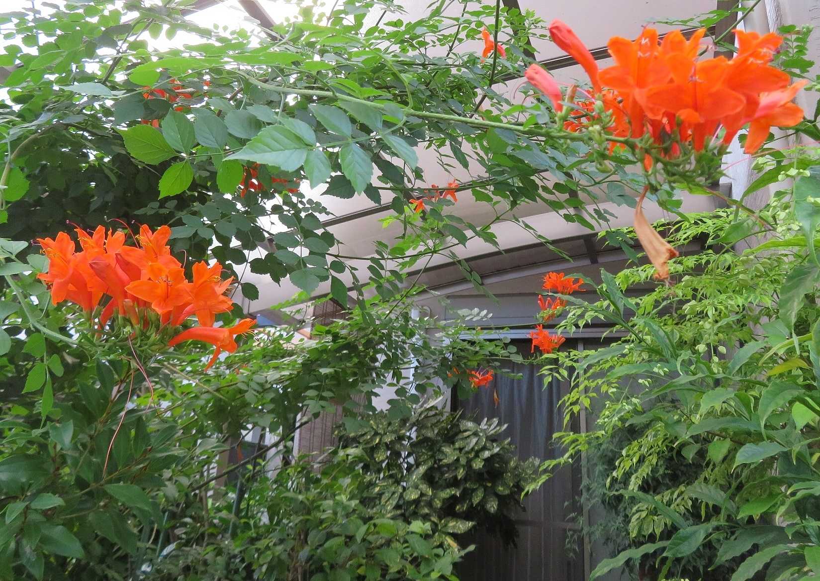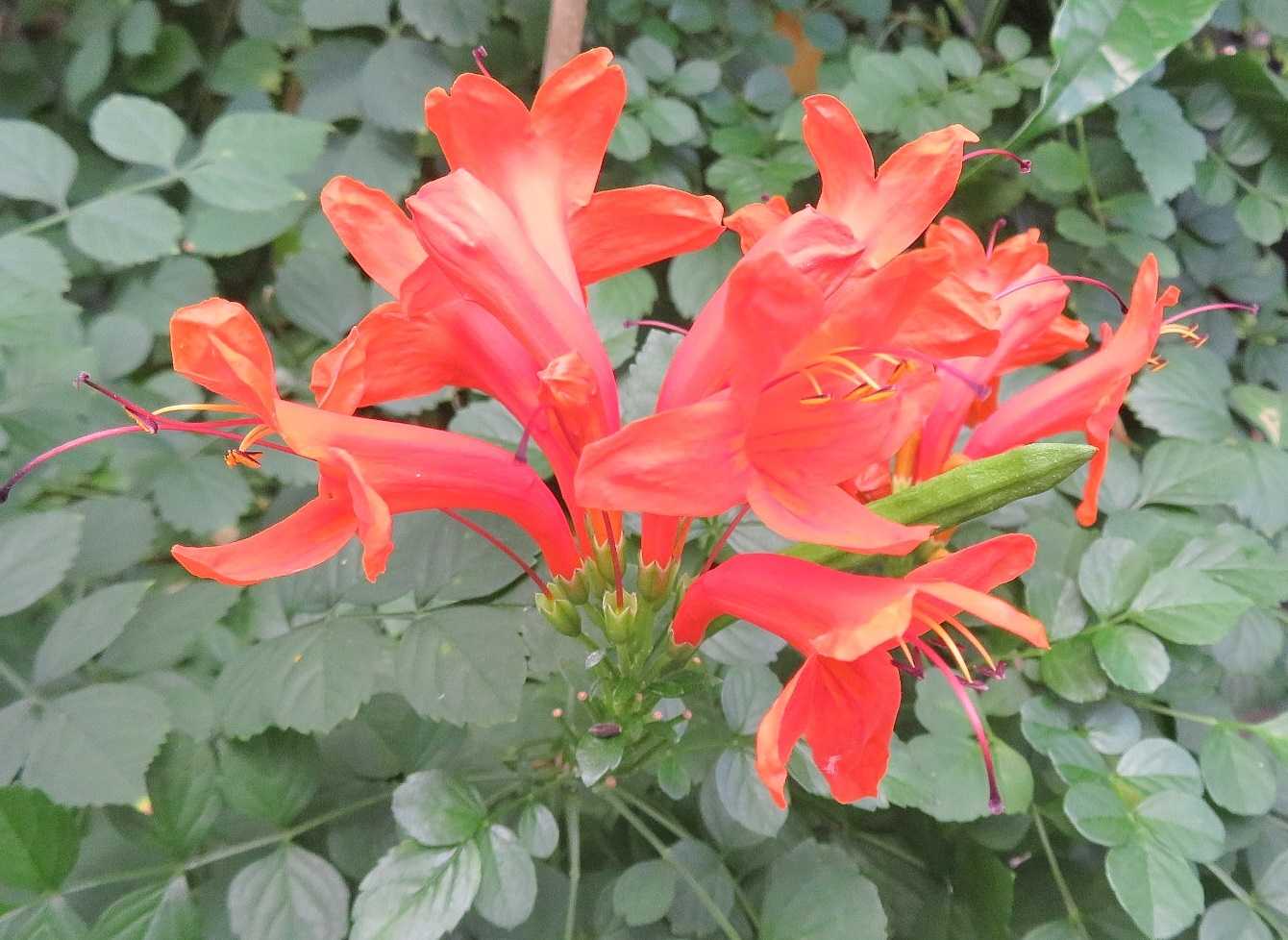 ノウゼンカズラに近い仲間です。 花期は夏から秋にかけて咲きますが、