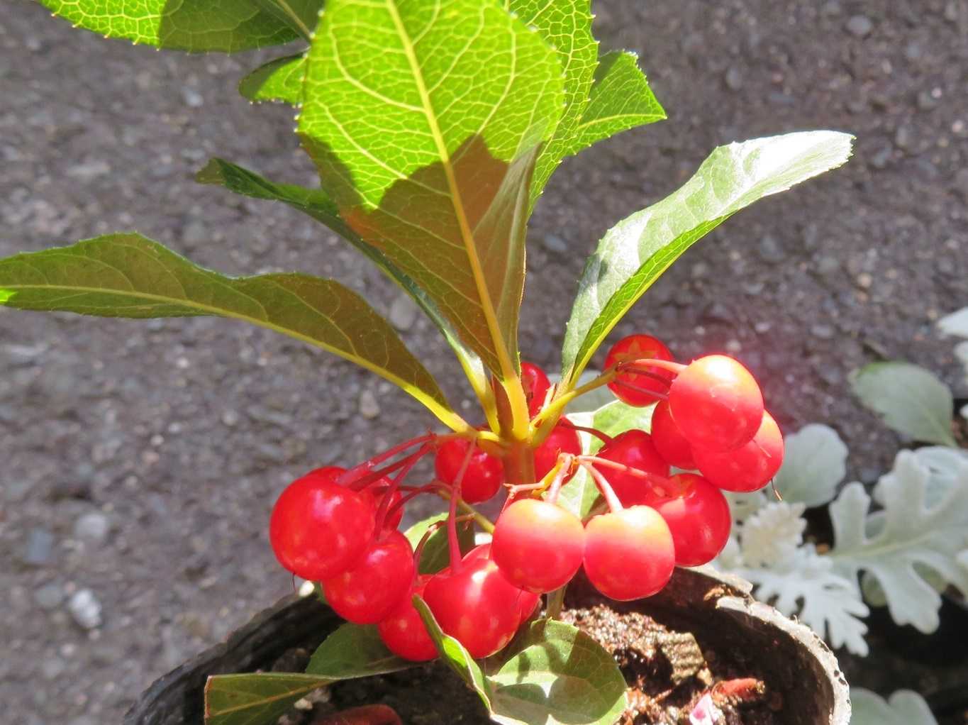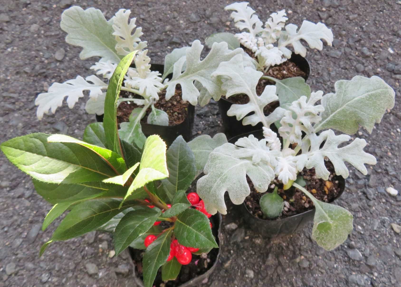 新しく買った我家のヤブコウジ(別名・ジュウリョウ) シロタエギク