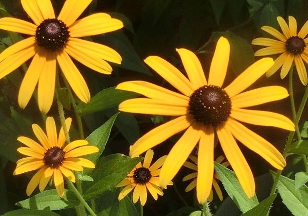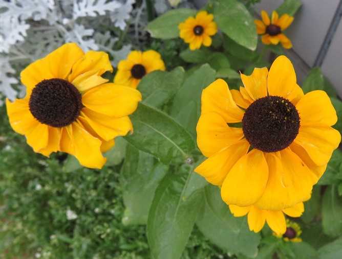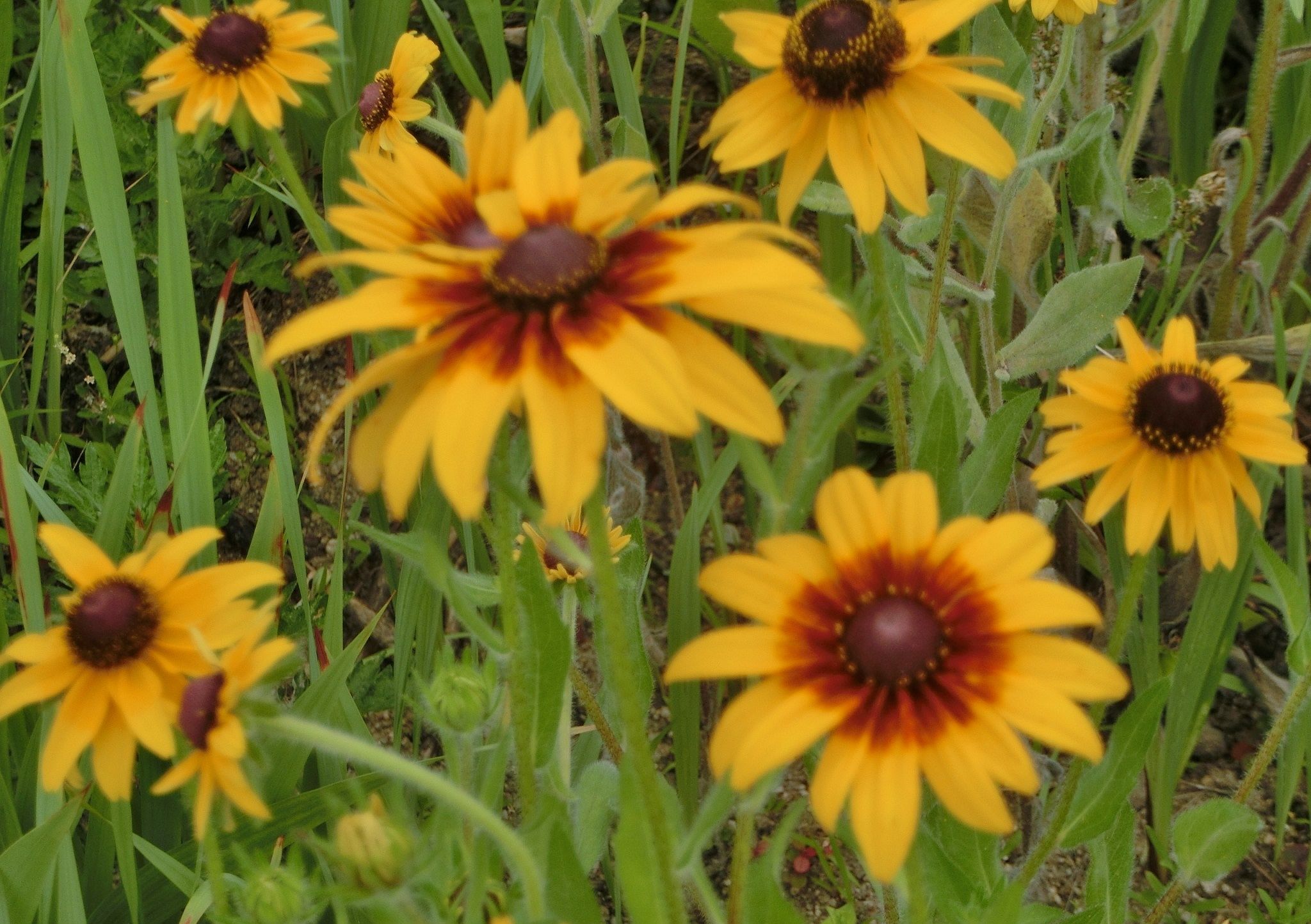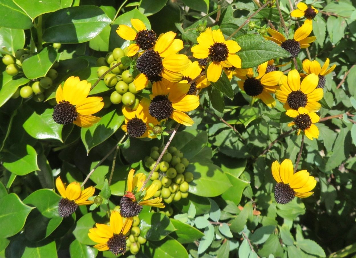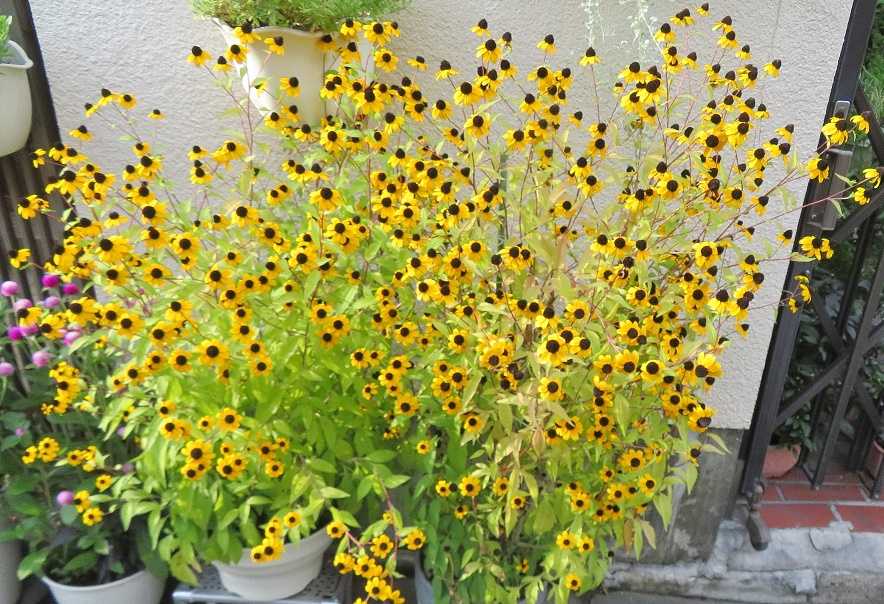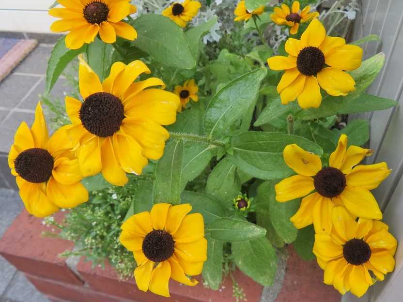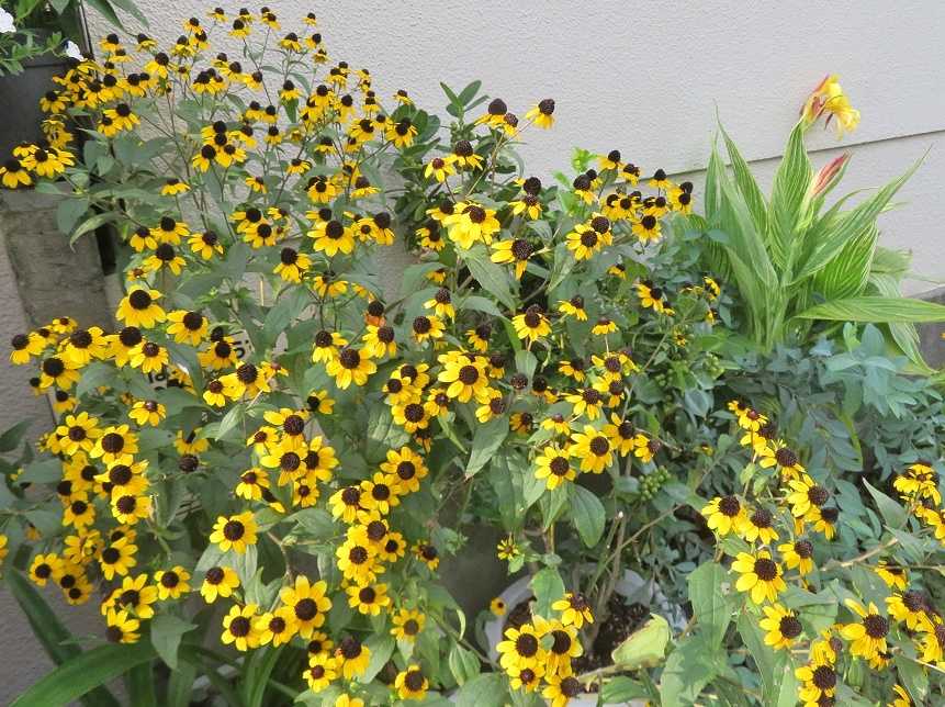盛夏〜秋にかけて黒い花芯がよく目立つ黄色の小さめの花を たくさん咲かせ