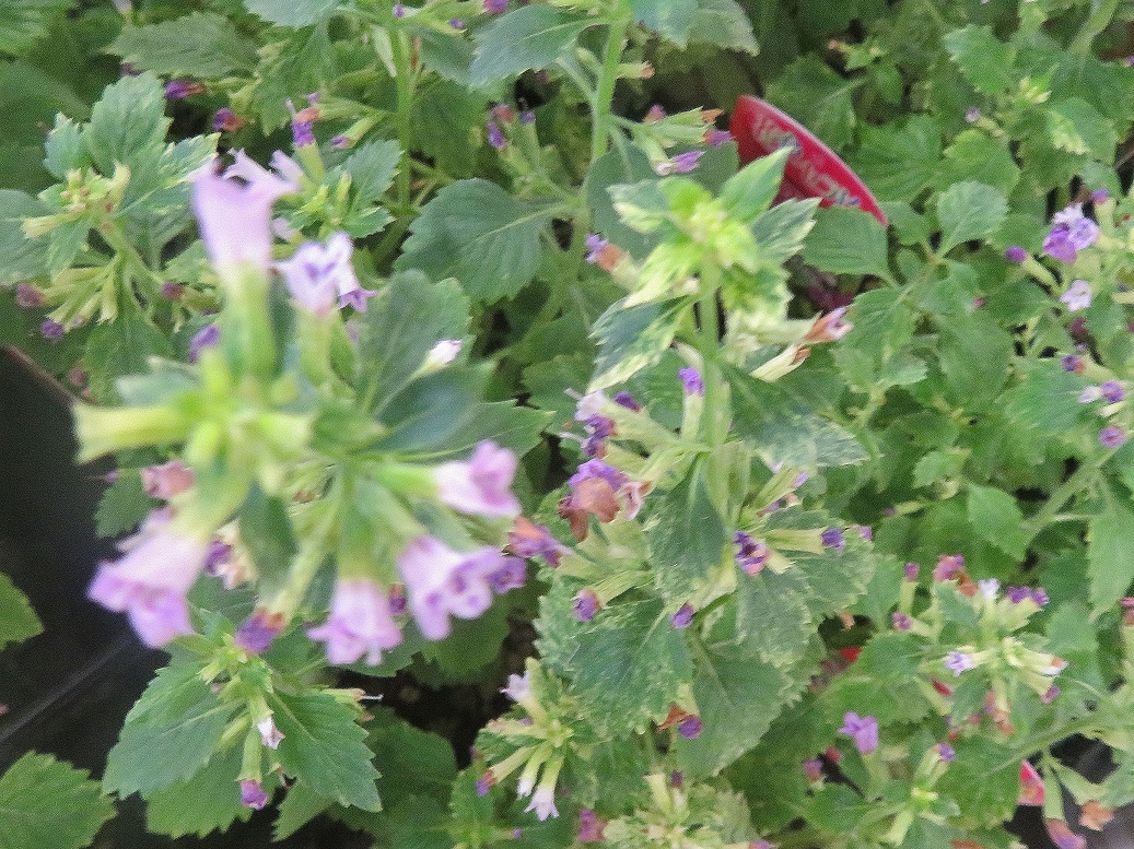 宿根草。 ネペタよりも若干花が大きめで、葉にきれいな斑が入る品種もあり