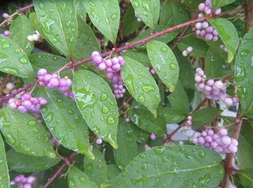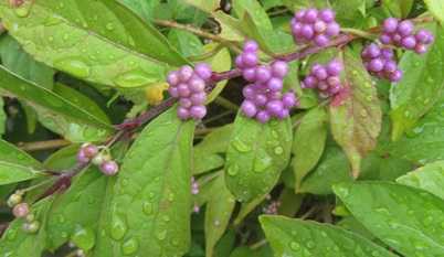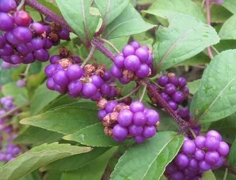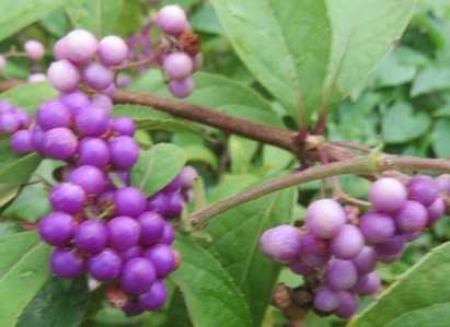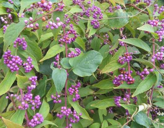 コムラサキの実はボール状につき、ムラサキシキブよりも密生し見応えがある