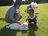 午前中、まだ雨が少し降っていたので外遊びできず・・。こんなときこそ!小麦粘土の出番だ!!とテーブルの上に新聞紙を敷き、その上にビニールシート。さぁ!思い存分遊びなさーい!!と粘土を渡した瞬間・・。すぐさま口に運ぶohta(ToT)/~~~そ・・そうだよね。まずはママがお手本を見せないとわからないよね、と一緒に入ってた紙を見ながら可愛いうさぎちゃんを作ってる・・つもりができない(ーー;)そうそう!!私不器用だったわこんなの無理無理!!その間にohtaは自ら遊び方を発見したよう。遠くのほうへ「ぽーい!」「ぽーい!!」と言いながら粘土を投げてた・・。はい!もちろんすぐに粘土は撤去されました。それでも嫌がらないohta。あまり興味ない??まだ早かったかな??今日は午後から晴れてきたので、車で以前一度行ったことのある「本郷公園」へマオちゃんと遊びに行った♪遊具は少し濡れていたけどなんとか大丈夫☆ミ着いてすぐにohtaは木の柱に上って(横になってるもの)遊んでたら、降りるときに転んだ・・。少し離れたとこで見てた私は「大丈夫!」と言ってみたけど本人は「いたい・・いたい・・・」と。あれ?と近づいてみると木の角にぶつけたみたいで右目の上あたりが少し切れてた・・・。すぐにまた遊びだしたので大事には至らなかったので良かったぁ"^_^"ohtaらは滑り台で遊んだり周辺を走り回ってた。ohtaの後を「ohta~!!」と言いながらマオちゃんがすごく可愛かった☆ミマオママいはく「ドラクエみたい・・」と(笑)先頭と同じように動いてついていく姿が本当にぴったり!!途中でお菓子を取りに来たマオちゃんはちゃんとohtaの分も持って渡しに行くのだけどohtaは気づかないでまた走り出し・・それを追いかけるの繰り返し(*^_^*)見てて本当に楽しい二人。ohtaは覚えたての言葉「あしょぼ(あそぼ)」を言ったり、「ま~も」とマオちゃんの名前を呼んでたよ☆ミ明日は天気もいいというのでまた、お弁当持って原っぱに遊びに行く予定!