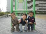 今日は朝からおぉぉ!!と驚くことがありました。朝いつものように洗濯物を干していたときのこと。ohtaも一緒になってベランダに出て遊んでたのだけど気づくと横にいない。。あれ?中に入ったのかな?なんて思いながらも洗濯物を掻き分け見ると・・。ベランダの柵によじ登ってるぅぅぅ!!!!うちは5階なんですが、物を落としたりすると危ないのですだれを柵に取り付けてあるんです・・がそのすだれをよじ登ってたんで焦りました。両手両足でぶら下がってる状態でした。上まではまだ届かないけど危ない!危なすぎる!!いつの間にこんなことができるようになったんだろう。本当に目が離せません。今日もおにに持参して公園へレッツゴー☆ミ子供は外で遊ぶ姿が一番だね。本当に楽しそうに遊んでた♪公園でおににを食べてお昼も終了。炭水化物しか摂ってない気もするけど・・。以前に比べると食べるようになってくれたからまぁいいかぁ!!ohtaにあいさつなどを教えてたら最近ちゃんとできるようになった☆ミ「はよ!(おはよ)」「あんと(ありがとう)」「めんちゃい(ごめんちゃい)」などなど・・。どれもぺこりと頭をする仕草が可愛くて何度もリクエストしちゃったり・・(笑)