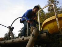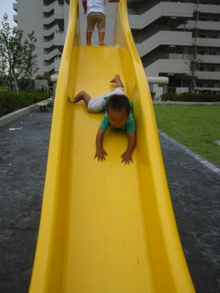 今日は恐れていたことがまた起きてしまった。。il||li _| ̄|○ il||li公園でいつものように遊んでいたohta☆ミ滑り台をこれまたいつものように滑っていた。ところが・・ふと気づくと滑り台の頂上にぽつんと立ってるohtaの姿が。階段から回ろうかとも思ったけどその間に落ちてしまったら!???と必死に下から「ohta!座ってぇ!!」と言い続けた。一緒にいたママ友もみんなで説得!!!!しかしその甲斐むなしく・・・ohtaは滑り台を再び駆け下りました。。。ありえない!ありえない!!ありえない!!!半分くらいのとこでohtaをキャッチ!・・ohta笑ってたよ・・。なんで駆け下りるんだろう??その後も何度も繰り返しやってました。痛い目にあわないとやめないよ~。なんてみんな言うけど痛い目にあわせるには危なすぎる。私が支えてくれるという安心感もあるのかとも思うけど、一人でもやりそうだし。誰かの真似をして、というわけでもなく。滑り台なんて小さいものでしょ・・。なんて思ってる方・・これがその滑り台です↓わかりにくいけど・・。誰か~助けて~