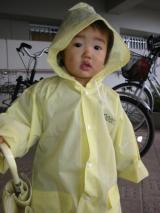 今日は一日雨。ゴミの収集日だったのでohtaがテレビに夢中のうちにこっそり捨てに行こうと思っていたら気づかれてしまった!!ohtaにおさがりのレインコートと長靴を履かせて一緒に外へ。←結構気に入ってるみたい☆ミ←後姿も可愛い~!(親ばか)雨の中で立ってても私が怒らないからか、すごく嬉しそうにしてた。なかなか帰ろうとしなかったよ~。なんとか玄関まで連れてきたのだけど、持ってた傘を離そうとせずその場で泣き出した(>_