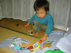 お昼を食べてから少し公園へ出てohtaと二人で遊んだ♪ほかには誰もいない。。ohtaは楽しそうに走りまわってたよ(*^_^*)しばらく公園で遊んでたのだけど日陰になってしまい寒かったので日のあたる広場へ移動して遊んだ。置いてあったボールを見つけたohtaとサッカーをした。なかなか上手に蹴れてたよ!!家に一度戻ってからマオちゃん宅へ遊びに行った。お気に入りのトーマスや滑り台で遊んでたよ♪夕飯の支度(カレーです)も済ませてきてたので夜まお邪魔してた。今日はパパを迎えにいくので連絡があるまで。7時過ぎにマオママがマオちゃんと一緒にohtaもお風呂に入れてくれることに。ohtaは初めのうちは「ママ~!」と言ってたけどすぐに慣れてマオちゃんと湯船に仲良く肩まで浸かってたよ(*^_^*)やっぱり女の子と比べると体がしっかりしてるって。女の子は柔らかくて気持ちいいよね。お風呂から出るとパパから電話があった。マオママが「見ててあげるよ~」と言ってくれたのでお言葉に甘えてohtaを任せてパパを迎えに行った。戻るとohtaはちゃっかり夕飯をごちそうになってた(^^ゞ食べ始めたばかり!ってかんじでここでもちゃっかりものの私は、ohtaをお願いして家へ戻りパパと二人で夕飯を食べた。二人きりの夕飯。静かだった。。いないとやっぱり寂しいね。食べ終わってから迎えに行くと、元気いっぱいに遊んでたよ(^O^)/全然綿h氏がいなくても平気!ってところがいいんだかなんだか。。いない間の様子を携帯のムービーで撮ったものを見せてくれたのだけど、マオパパと楽しそうに遊んでる様子が映ってた。マオパパも男の子のダイナミックな動きを見てびっくりしたみたい!たくさん遊んでくれてありがとう!!今日はohtaのことを見ててくれて本当にありがとう!!ohtaもマオと混浴できて嬉しかっただろうなぁ。。(笑)