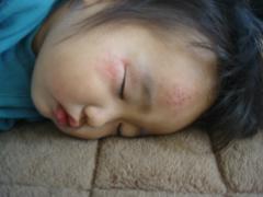ohtaの下痢が治らないため、今日は病院へ行ってきた。待ってる間におっぱいを欲しがり、まだ時間があったため与えてしまったがためにohta撃沈!!診察の時に無理やり起こされたのでいつも以上に暴れてた。のども赤くなってたので、風邪でしょうとのこと。シロップ一種類・粉薬を出してもらった。今日はそのほかに軟膏を3種類もらった。乾燥肌のohtaはいつもヒルドイドという軟膏を塗ってるのだけどあまりかさかさが治らない。そのことを今日話したらそのほかにワセリンも出してくれた。もう一種類は胸の辺りにできてるかきくずしにつけるもの。これもずーっと治らないので少し強いのを出してもらった。(医療費無料!バンザイ!!)←もらったシールを複数顔に貼り付けてるohta午後からマオちゃん一家と一緒に車で少し大きな公園へ遊びに行った♪天気もいいし。なにより暖かい!!公園日和だよね。ohtaも元気いっぱいに公園を満喫してたよ!砂場があるのがこの公園の魅力だわ。うちの公園はないからね。1時間半くらい遊んだ後、退散した。病院に行ったあたりから、嫌な予感はしてたんだけど私の鼻かぜが悪化してる。鼻声だよ~(T_T)/~~~熱とかないから元気だけどね。ohtaにうつらないといいけどなぁ。