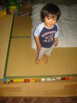 今日で4月の保育園もおしまい。ohtaは一度も休まずに通いました!!保育園に通いだすと色々病気をもらってくる・・という神話があるから心配してたんだけど周りの子がバタバタ風邪で休んでる時もohtaは元気いっぱい!!これはやっぱりおっぱいのお陰なのかな~??今日は我が家の給料日ohtaを送った帰りに銀行に寄ることに。連休前で混んでるかなぁ?と思ったけどまだそれほどでもなかったよ。本当はそのまま買い物して~が理想だったけど残念なことにまだお店が開く時間までまだある。。ので一度帰ることに。洗濯して~お布団も干して~!いやぁ天気がいいと主婦業も頑張ってみる私でもその合間に撮りだめしてある連ドラを見たりしちゃったけどね。お昼過ぎからはのんびり食材の買い物に。子供がいなくてもほぼ毎日マオちゃんママと一緒にいるので一人の時間てなんか久しぶり~♪気ままで良かったわ。さて、お迎えの時間。お友達のクウちゃん(男の子)と今日は仲良く!?帰りました。駐車場まで行くと「クウちゃんこっち~」と車を指差してたohta。その後「ohtaはこっち~」と言ってたよ保育園から帰る時は甘えん坊なohta。車までの道は絶対歩かず「あっこ~」。でも朝はちゃんと歩いて行くようになったからいいかな!夕飯を作ってる間、一人でミニカーで遊んでた。「できたよ~!みて~」と言うので手を休めて見に行くとこれができてた一番後ろの汽車を押して動かし脱線すると「△@*#ぁ~!!」と絶叫して手で全部をばらばらにしてました・・。「ママと一緒にもう一回やろうね」と言うと気を取り直してまた並べてたよ(笑)「おちゃのむ~」と催促があったので買ってきた牛乳をコップに入れてあげると一口飲んでから私の顔を見ながらコップをかたむけてた「だめよ~!!」と言い続けそのまま取り上げちゃった!!人の顔見ながらわざとやるんだもんなぁ。今回はセーフだったけどね。明日からGWだねぇ。。予定ないけど。