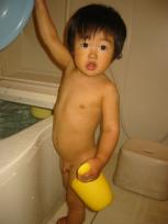 パパが少し風邪気味なこともあり、今日は一日家でごろごろ。ohtaだけはお着替えしてるのにパパ&ママは一日パジャマで過ごしちゃった。一日ohtaと家で過ごす大変さを今日改めて実感したよ・・12時過ぎにお昼寝をしたohta。起きてからは元気すぎるほどのハイテンション先日の誕生日の日にohta用にと踏み台を買ってあげたのだけど、それを使ってシンクで遊ぶようになってしまった。何度注意してもやめない。水浸しぃ何か口に入れてても他に欲しいものが現れると口の中身をべぇ~っと出して要求するし。何度も同じ歌ばかり歌わされるしぃ。。ぐちぐち・・。疲れた。。この2枚の写真は昨日の朝撮影。お尻を洗うために行ったのだけど、湯船のお湯で遊びだしたので全部脱がしちゃった!初!ヌードです(笑)そんな困ったチャンのohtaだけど、今日はたくさんパパやママとお話もしたよ。ミニカーの中にあったミニ飛行機を見つけると「ほこ~きみたねぇ。きのうみたよ~」と言ってきた。きのう・・なんて分かって言ってるのかは定かではないけどびっくりしたよ。ちゃんと飛行機持って飛ばしてたし(笑)遊んでる途中もパパに「やる?」なんて聞いてみたり、普通に会話が成り立ってるよ2歳になってまだ3日。これが「魔の2歳児かぁ」なんて思った一日だったけど、成長も沢山見れて嬉しい一日だったかな。