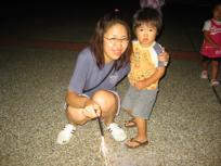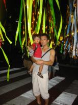 今日、保育園にお迎えに行くと先生が「すいません・・」と謝ってきた。何かな~?と思ったら今日ohtaはお友達に噛まれたらしい。外で遊んでる時に背中を噛まれたんだって。すぐに冷やしてくれて、その時も見たら冷えぴたが貼ってあった。はがして見たけど、少しだったのでまぁ「わかりました。」とだけ先生に言った。以前。くうちゃんが噛まれた時に相手の子を聞いたら教えてもらえなかったと言ってたので、あえて聞かなかったよ。一緒の子かもなぁ。まぁ、大したことなくて良かった。ohtaもいつやるか分からないし、まぁお互い様よね。本日は7月7日の七夕パパに電話したら、7時過ぎには帰れると言うので急遽平塚の七夕まつりに行ってきた。ohtaは車に乗ってすぐに寝てしまった・・。うちから平塚まで一時間くらいかかったかなぁ。平塚に着いてからも駐車場に入れるのにどこも長蛇の列!!七夕飾りの点灯時間は21時30まで。車を止めらたのがちょうどそれくらいだった。屋台も片付けだしてたけど、なんとか買ってライトの消えた七夕飾りを見て回った。ohtaも起きてパパに抱っこされて見たよ。←大好きなパパと!←ぐーちょこらんたんのちょうちん♪←微妙なアンパンマン&食パンマン(笑)見て回ってた時、ohtaは何度も「きれいねぇ!」と言ってた。「楽しい?」と聞くと「たのしい」と答えてくれたんで、それだけで来た甲斐があったかな。来年もまた来れたらいいね♪