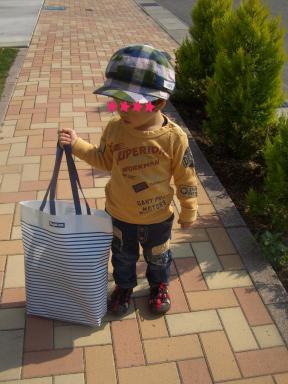 本日1回目の日記です昨日は、いい天気だったので、近くの公園へ。といっても、ここは公民館の庭なので、ちょっとしか遊具はありません。でもいつも空いているから、人見知りの息子は結構お気に入りなの今日は、春に買ったF.OのバックポケットパンツとベビドのTシャツを着ています。F.Oの方は、すごく欲しくて95しかサイズが残ってなかったから買ったけど、やっぱり大きすぎて、なかなか履けず、やっと履かせることができました。でもまだ大きいのでベルトしてます。パーチケのパラシュートを買って以来、後ろにポケットが付いているのをつい買っちゃうんですよね~。帽子は、去年のセールで買ったDDのもの。ちょっと春っぽいけど許して~! キッズアリーさんにありました。他にもキャリー品が結構あったよ!