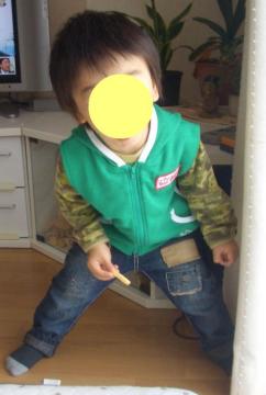 本日2回目の日記です★F.O BoomyRoomy交換希望品追加★今日もうちの方は1日曇り空すごく寒かったですうちにいても暇なので今日は児童館へ行ってきました。以前、うちの子は人見知りで、なかなかお友達と遊べないということを書いたのですが、人見知りは直りつつあるものの、未だにお友達と遊ぶのはちょっと苦手ですまあそれは仕方ないにせよ、物を他の子にどんどん取られるは、奮起して取り合ってもいつも負けます今日も自分よりかなり小さい子と取り合って、あっさり負けましたこんなに弱くて親の方がイラつくときもあって、まあ仕方ないんでしょうが・・・。もうちょっと強くなってくれるといいんですが~!今日は、F.Oのリペアパンツに、BIT’ZのキャリーのスカルロンT、去年買ったBABYDOLLのベストを着てます。写真を撮ろうとしたら何故か足開きポーズです 今ならポイント10倍