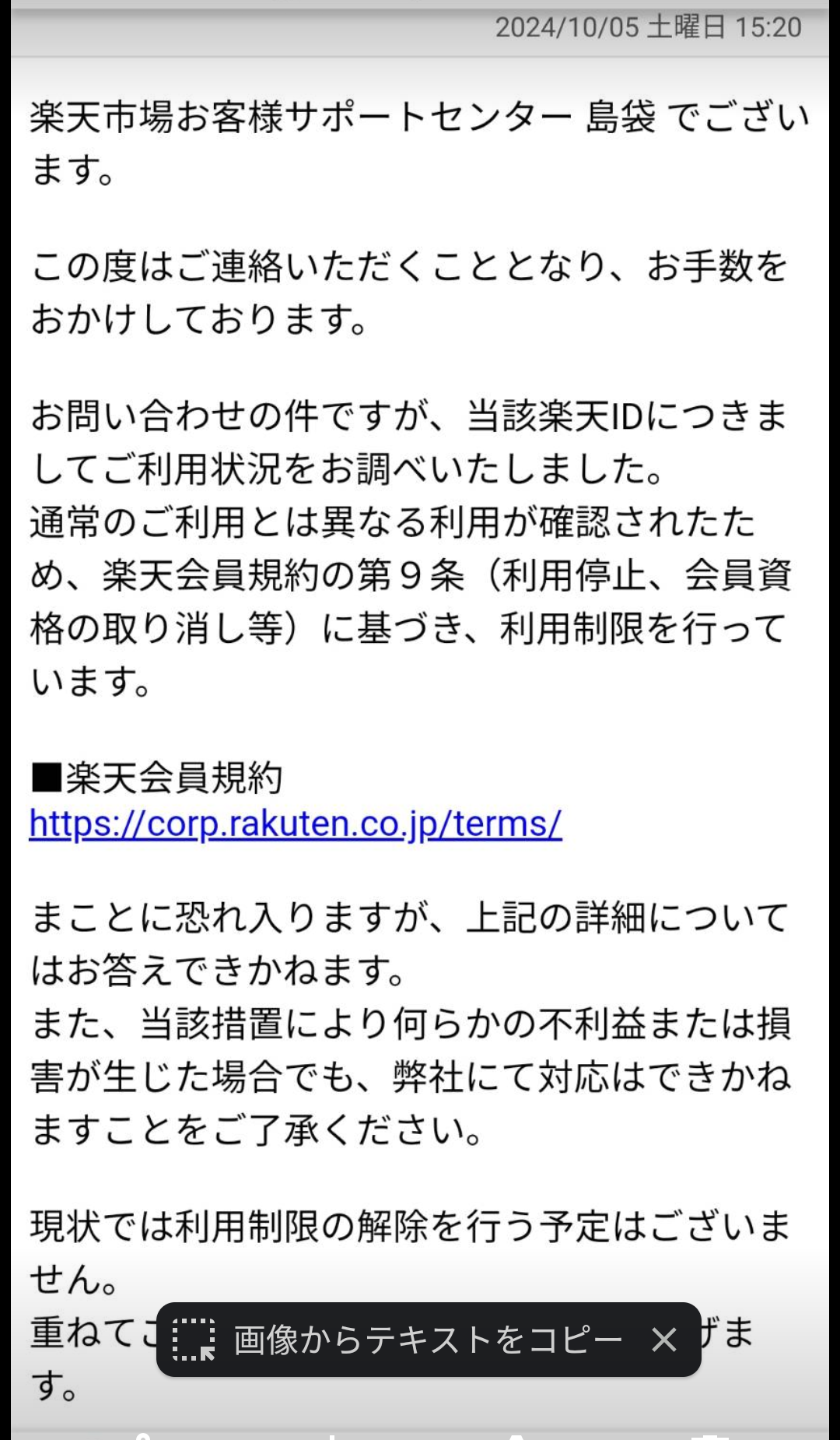 20年以上使っていた楽天アカウントが停止されてしまったぽ!?何も不正なこと やってないのにぽ!(´;ω;`)ウゥゥダイヤモンド会員が始まってからずーっとキープしてたのにぽ!タップorクリックpo出来すぎ3の熱き魂上のブログにはもうログイン出来なくなりましたぽ1部停止らしくブログと楽天市場と競馬とボートにログイン出来なくなりまふたぽ!運用ポイント30000と大事に買い物とかで貯めてた7000ポイントが使えなくなりましたぽ!?ポイントとか見える様になっているのにログイン出来ないから使えないぽ悲しいのは3万ポイントが使えなくのではなくブログにログイン出来なくなった事が1番のショックだぽ♪ここから再スタートだぽ♪同じクレジットカードで買い物できぽ♪楽天競馬の登録でクレジットカードの登録が出来ないぽ!もうやらないから良いんだけど登録だけは しときたくてぽ♪あとボートも時間がある時に再登録しとこっとぽ♪